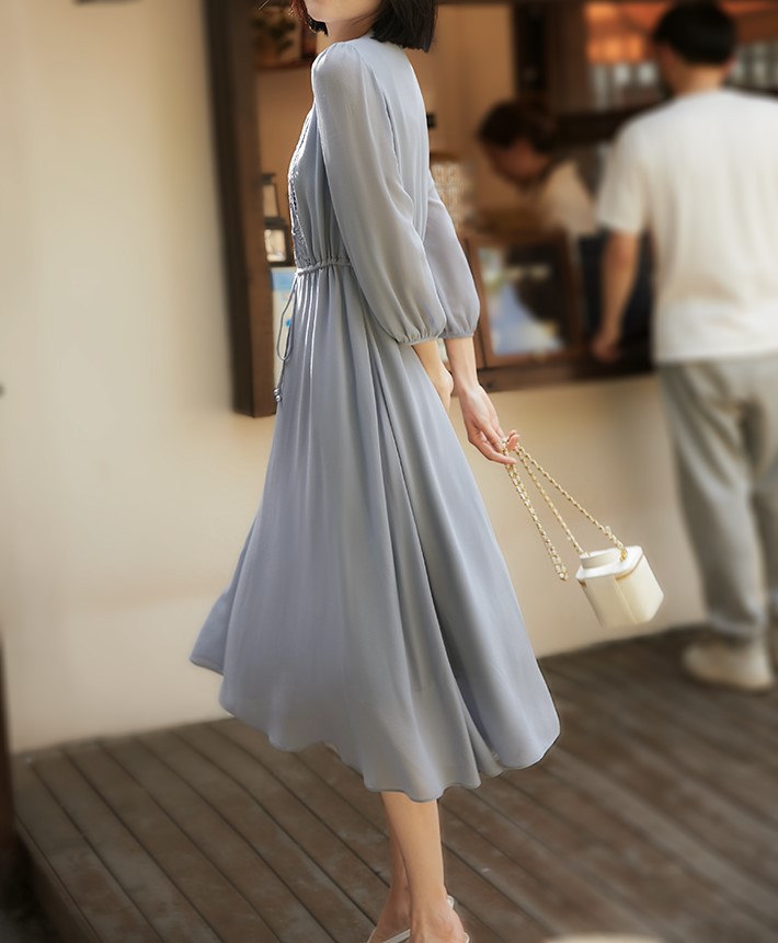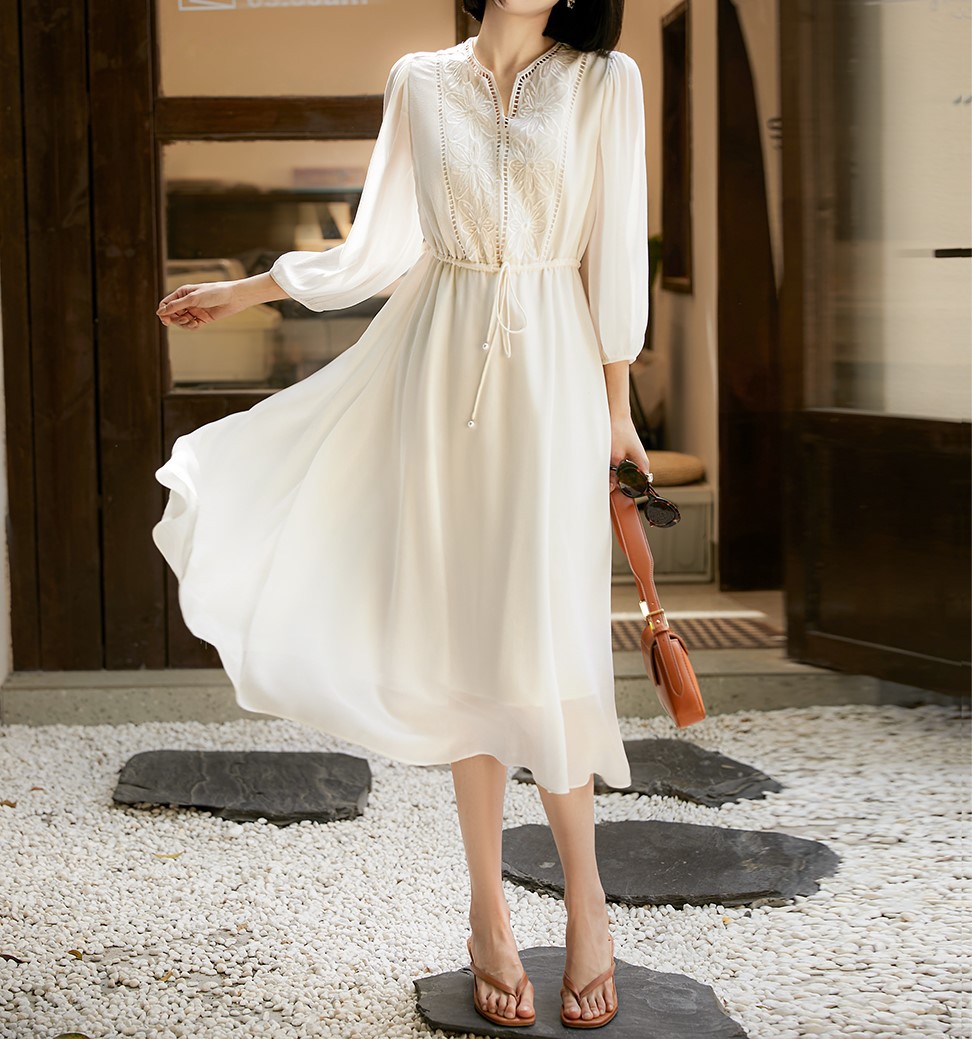 气质高级质感仙女裙刺绣 轻薄飘逸乔桑蚕丝连衣裙女夏新款