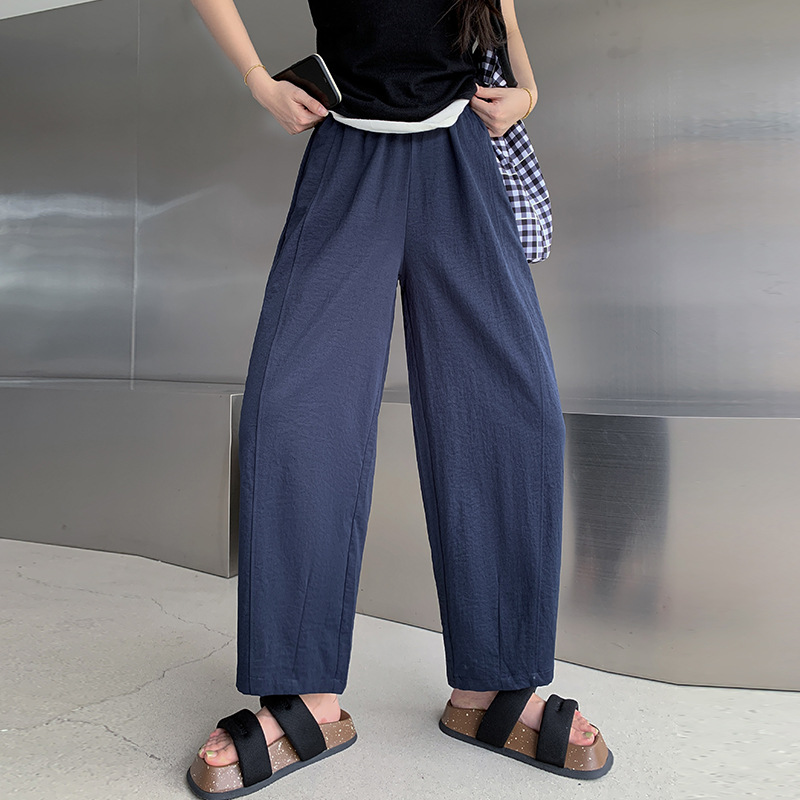仿棉侧拼哈伦裤女夏季休闲百搭遮胯显瘦奶奶裤纯色高腰直筒萝卜裤