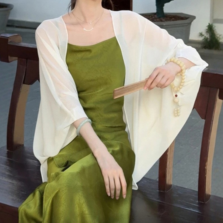 轻国风高端气质吊带连衣裙防晒披肩开衫女2025夏新中式裙子