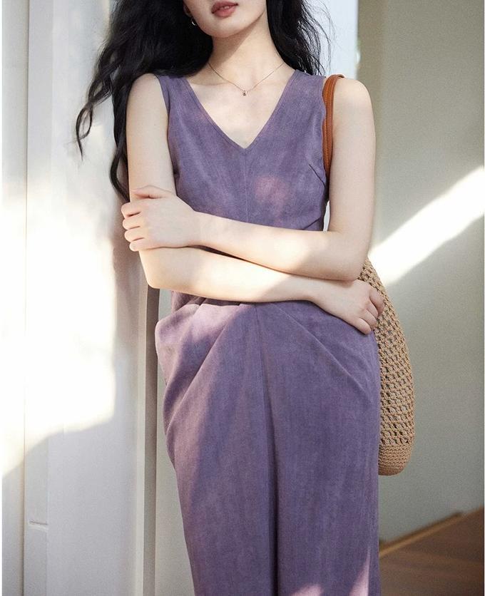 格纹圆领无袖连衣裙女2025夏新款宽松显瘦懒人穿搭裙子