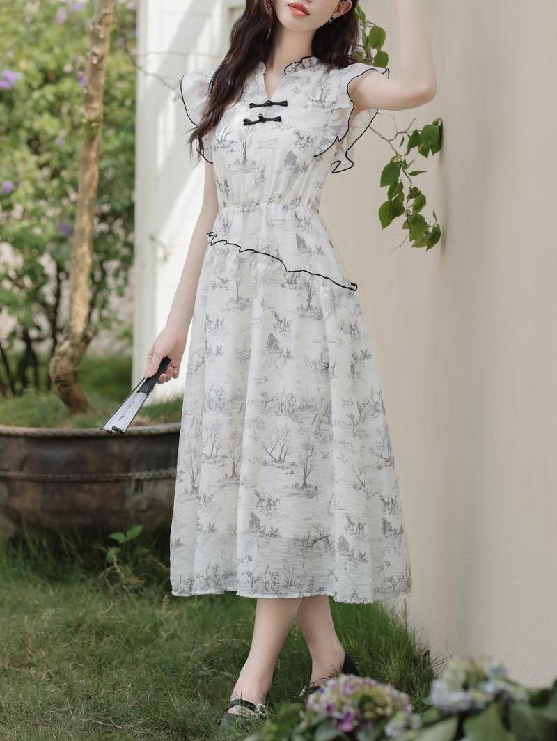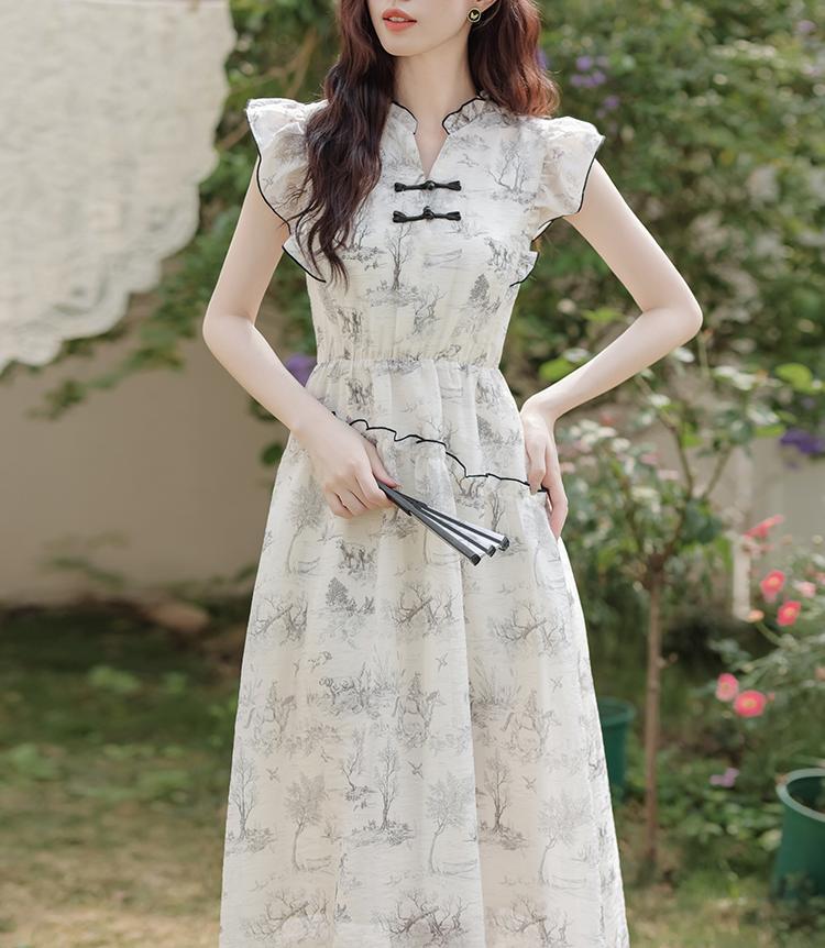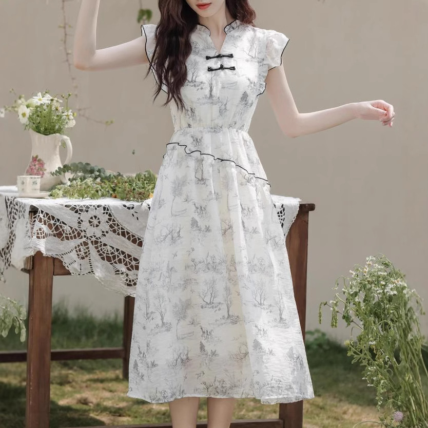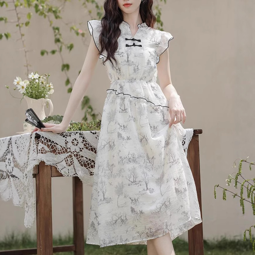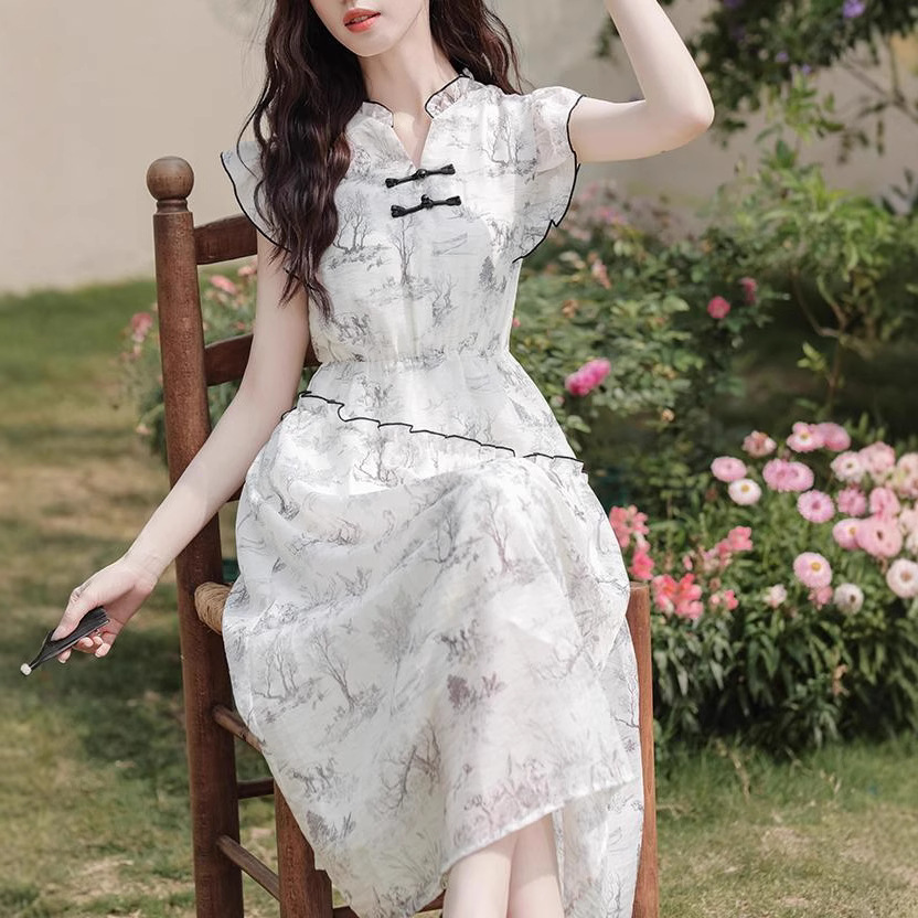 新中式女夏季25改良旗袍裙汉元素盘扣中国风禅意飞飞袖连衣裙