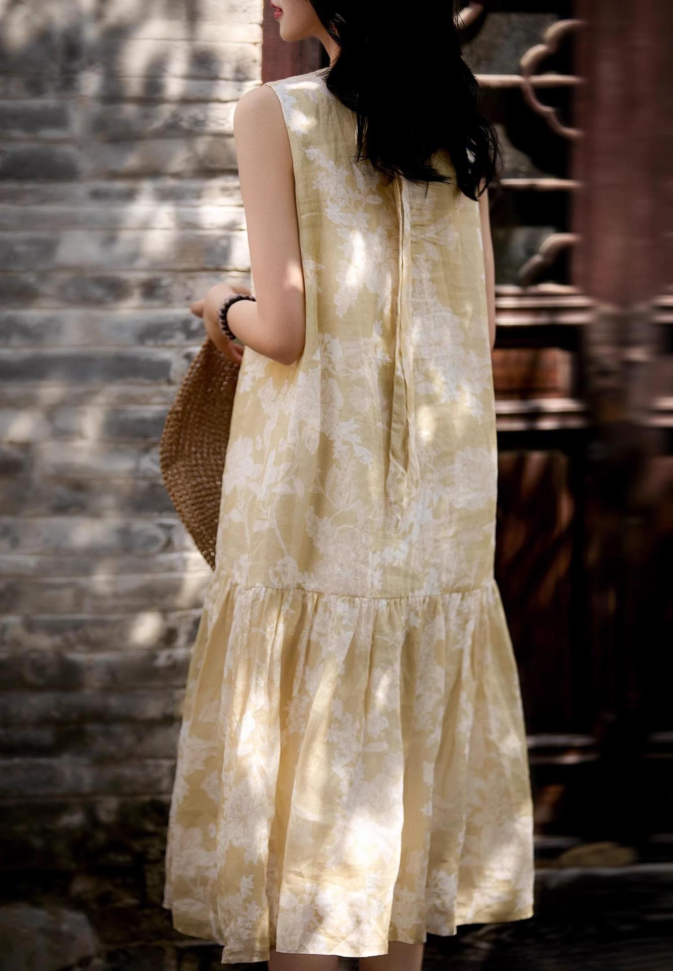 海边度假裙~夏季清凉 印花无袖连衣裙25女夏新款百搭裙子