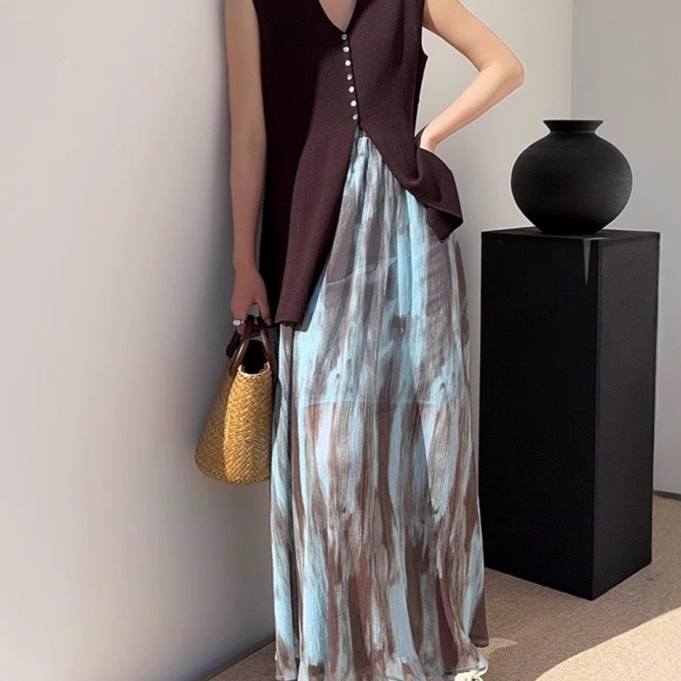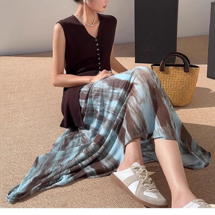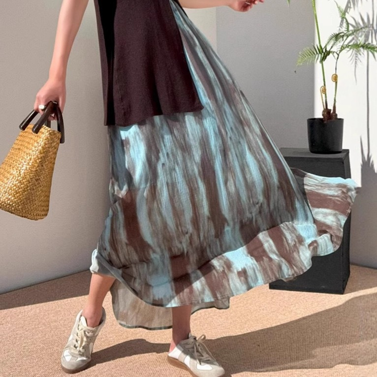 扎染半身裙女2025年夏季新款时尚高级初夏穿搭a字长款小众裙子