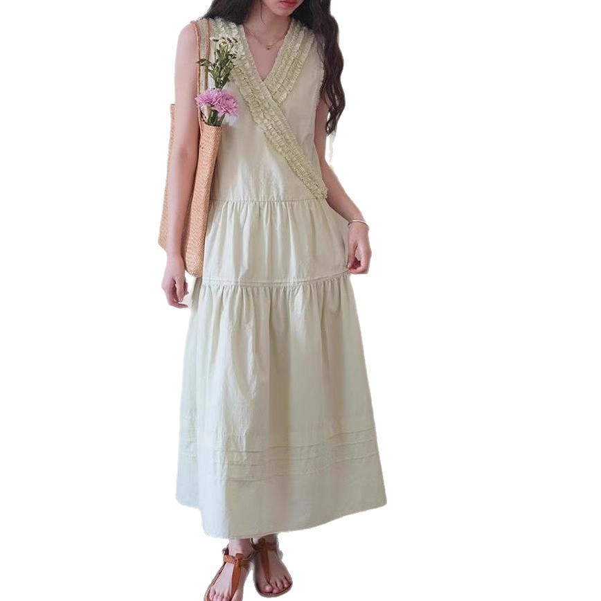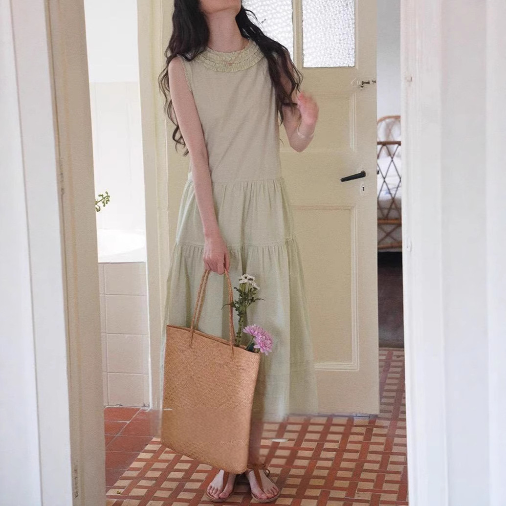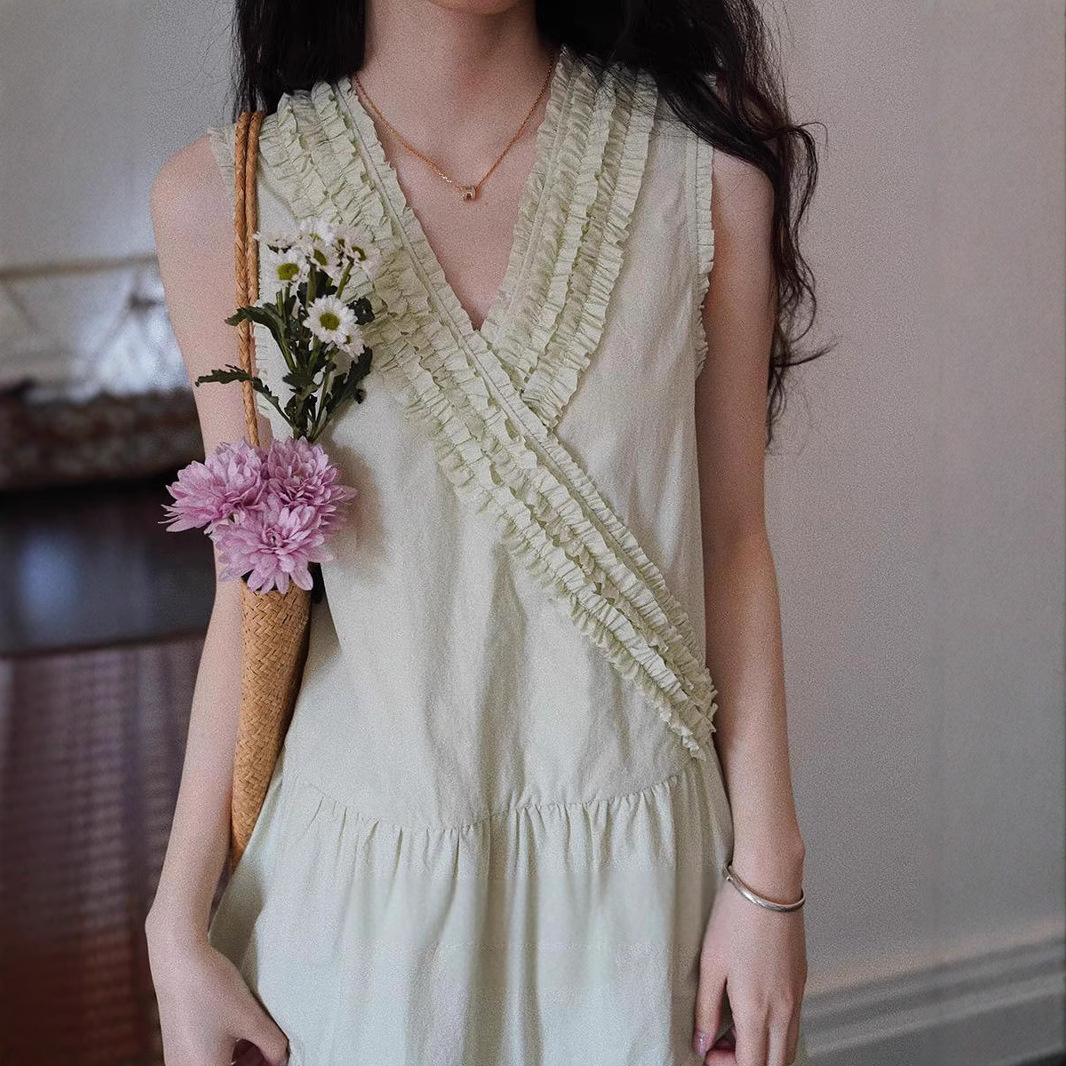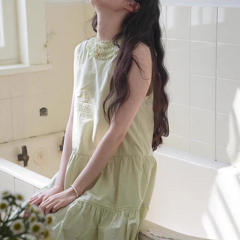 ·镇店之宝~淡绿进口匹马棉法式木耳边前后两穿无袖背心连衣裙女