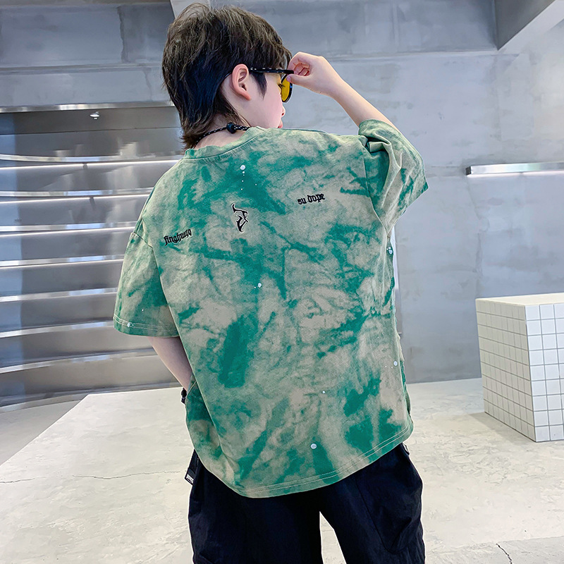 男童夏装潮牌扎染短袖T恤2025新款儿童男孩夏季酷帅宽松半袖上衣