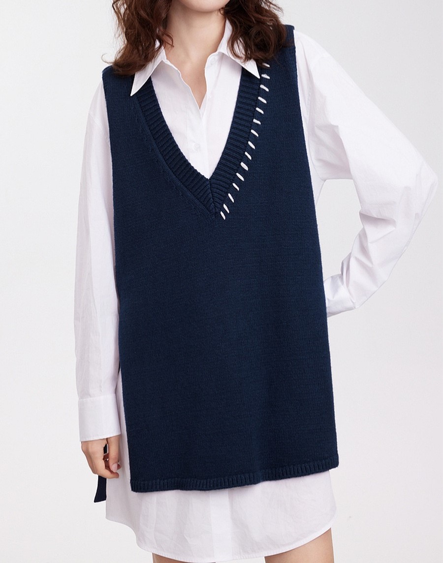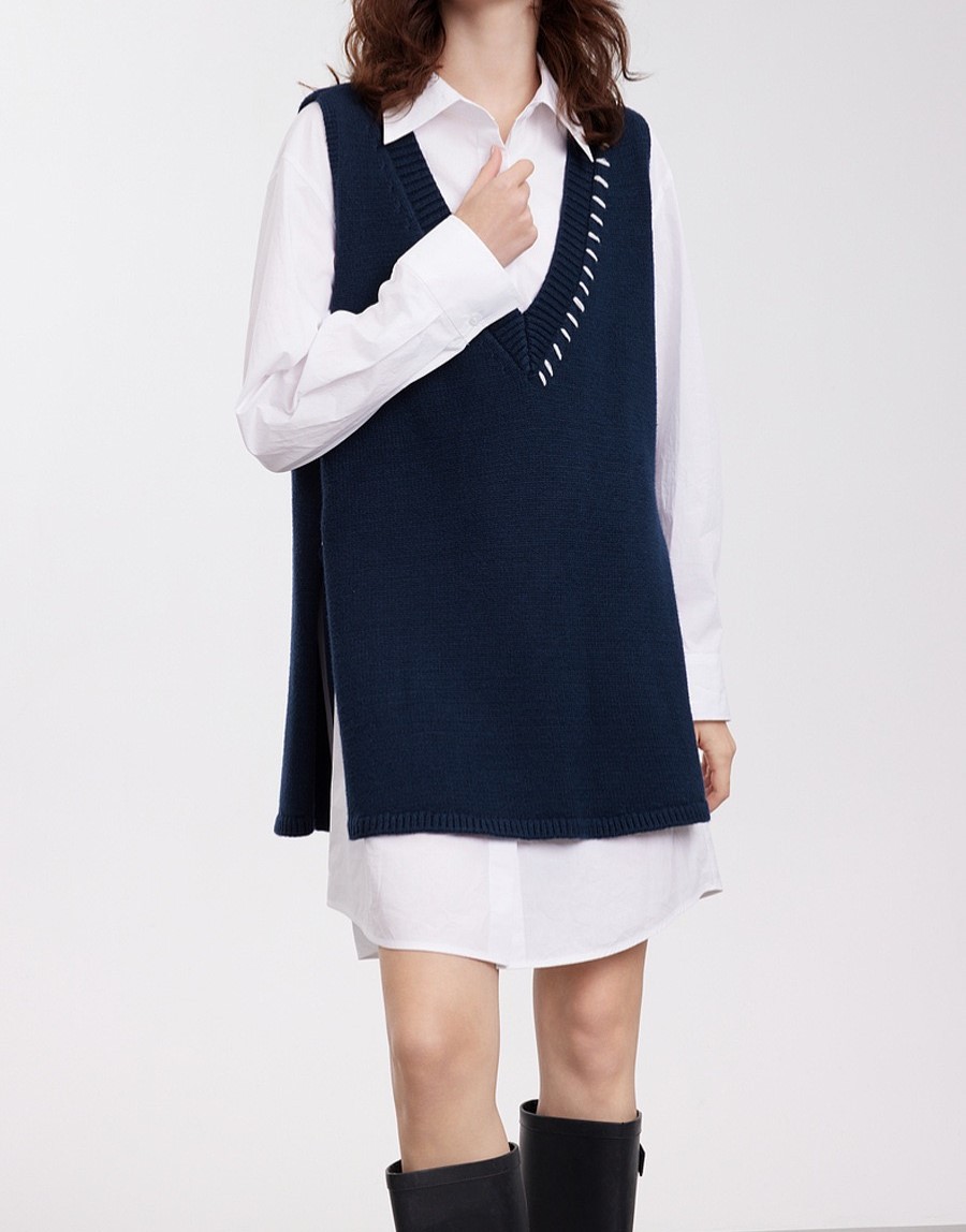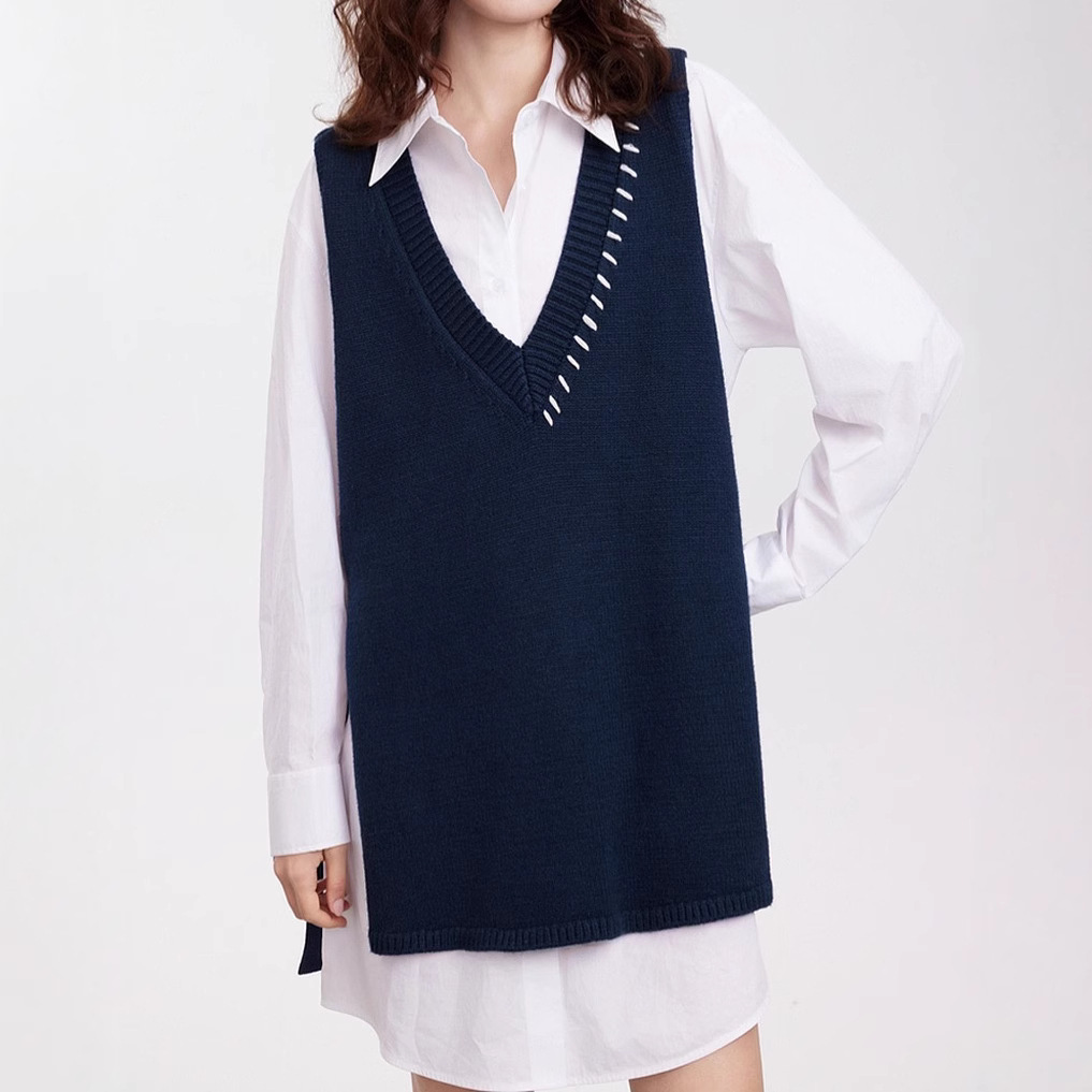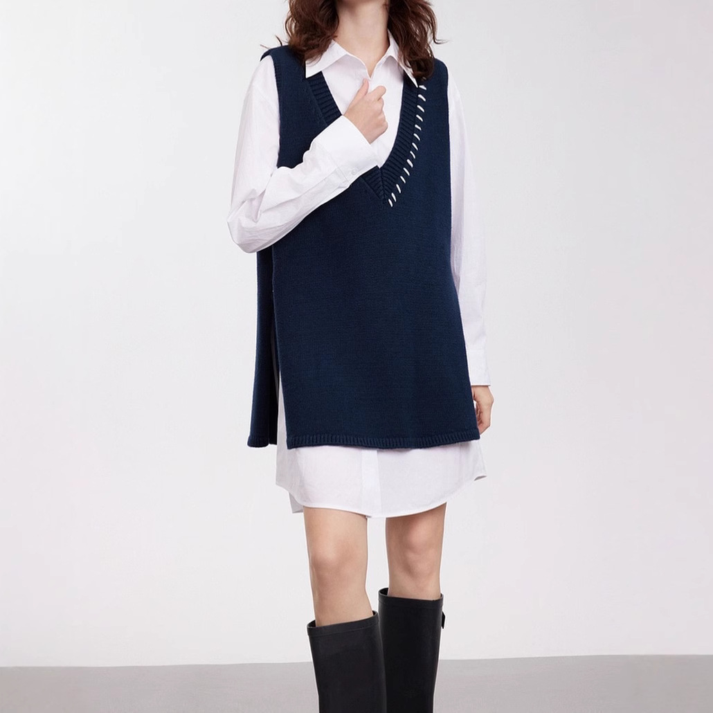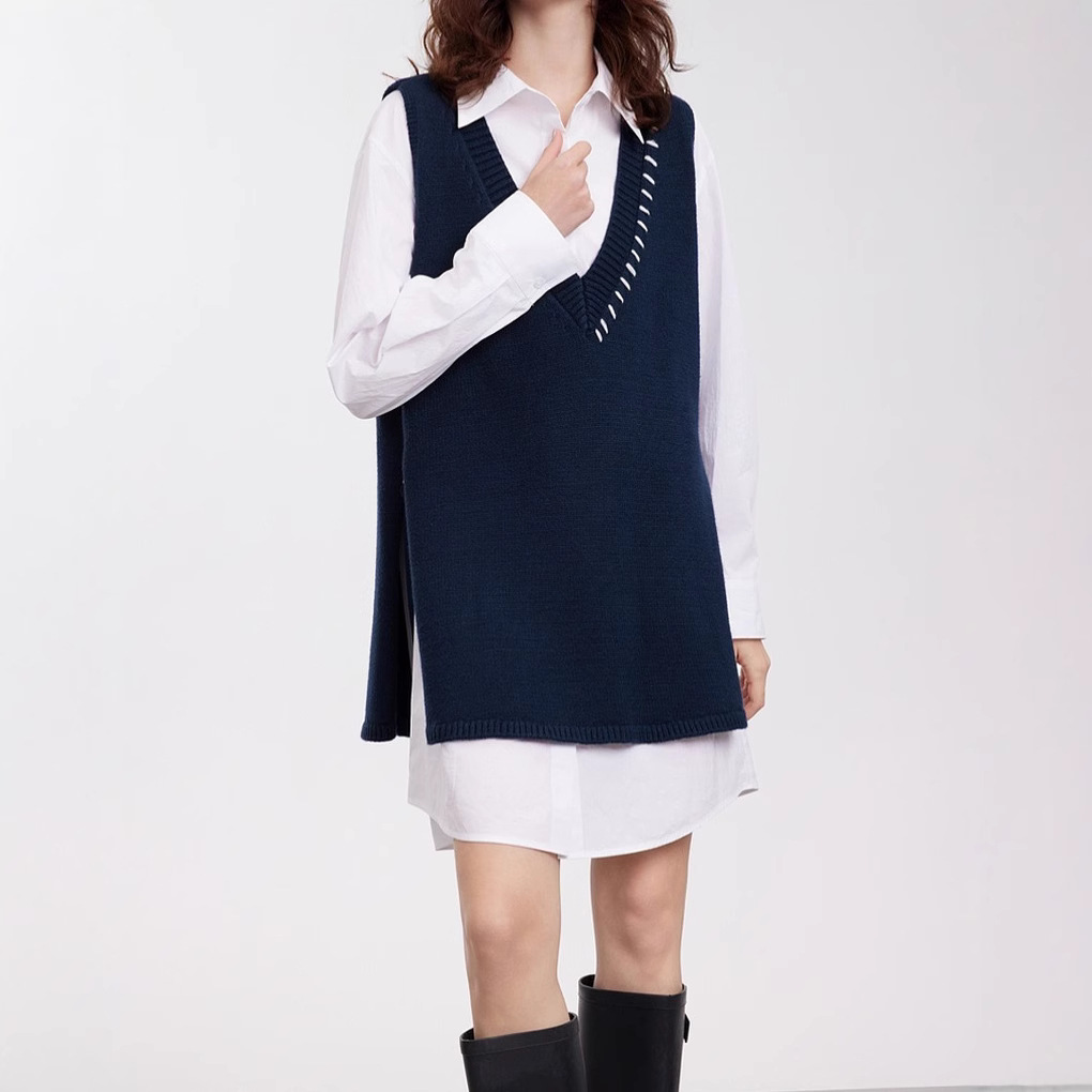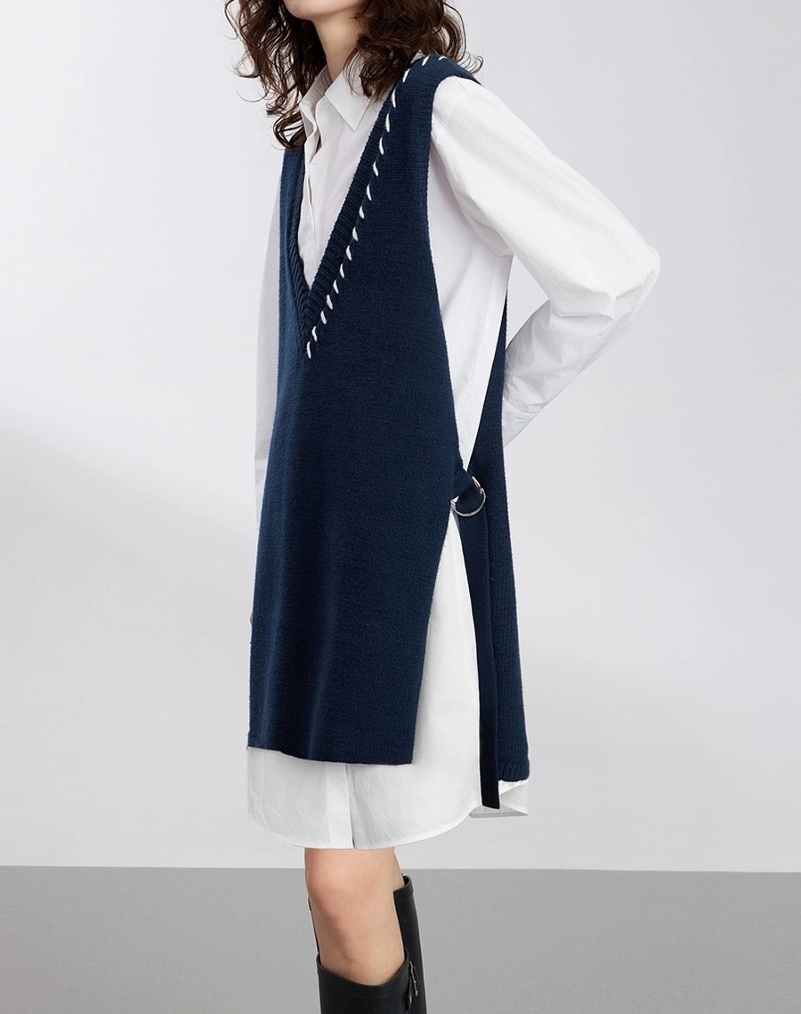 ELEL 法式衬衫撞色马甲连衣裙两件套女2025春夏季新款设计感裙子