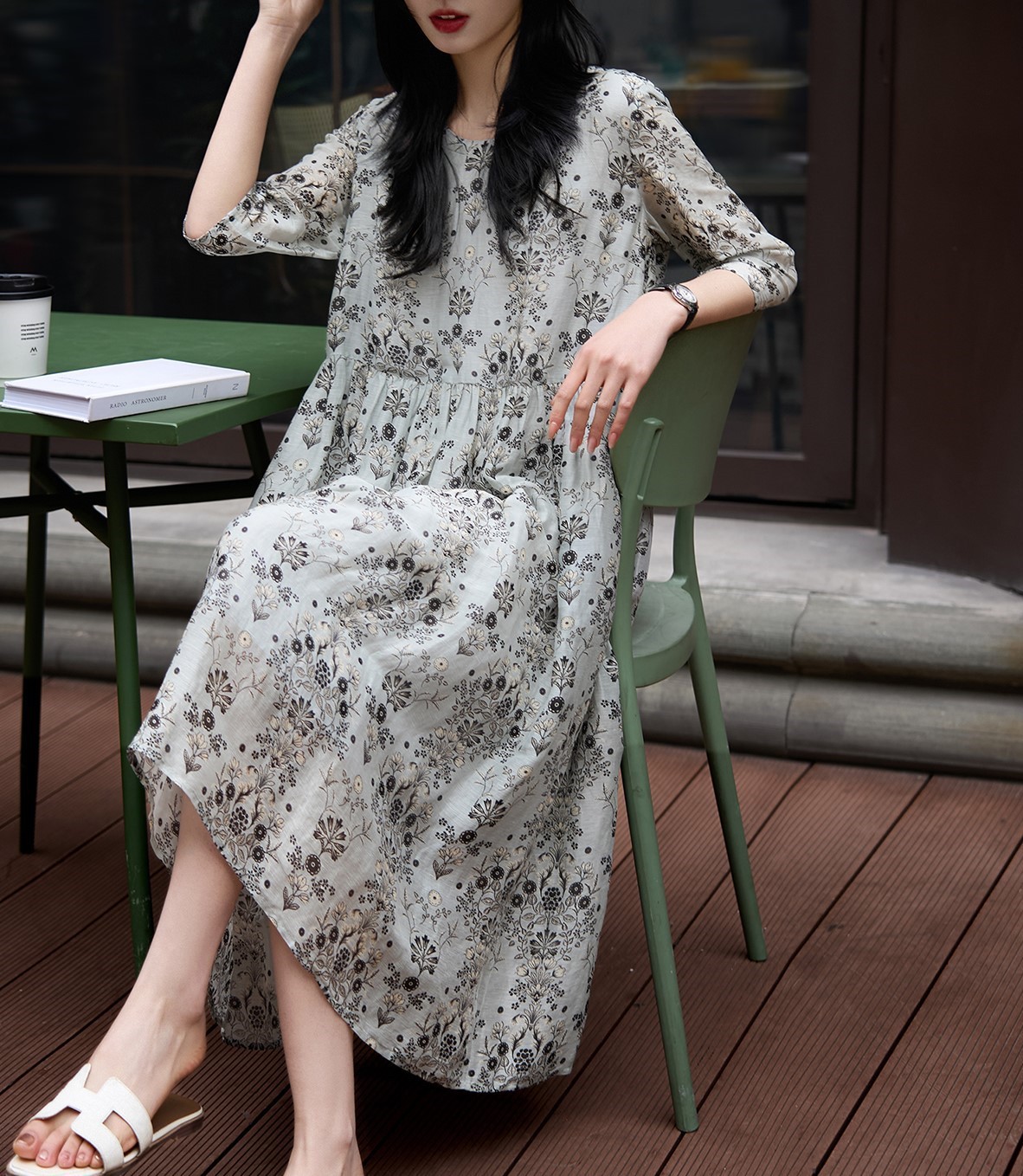 典雅轻奢 桑蚕丝 亚麻 碎花连衣裙女夏季气质优雅长裙