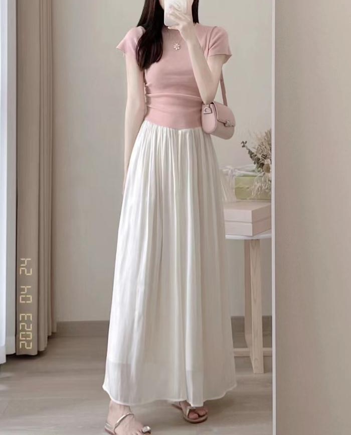 夏季小个子盐系穿搭粉色短袖上衣半身裙轻熟小香风两件套女新款
