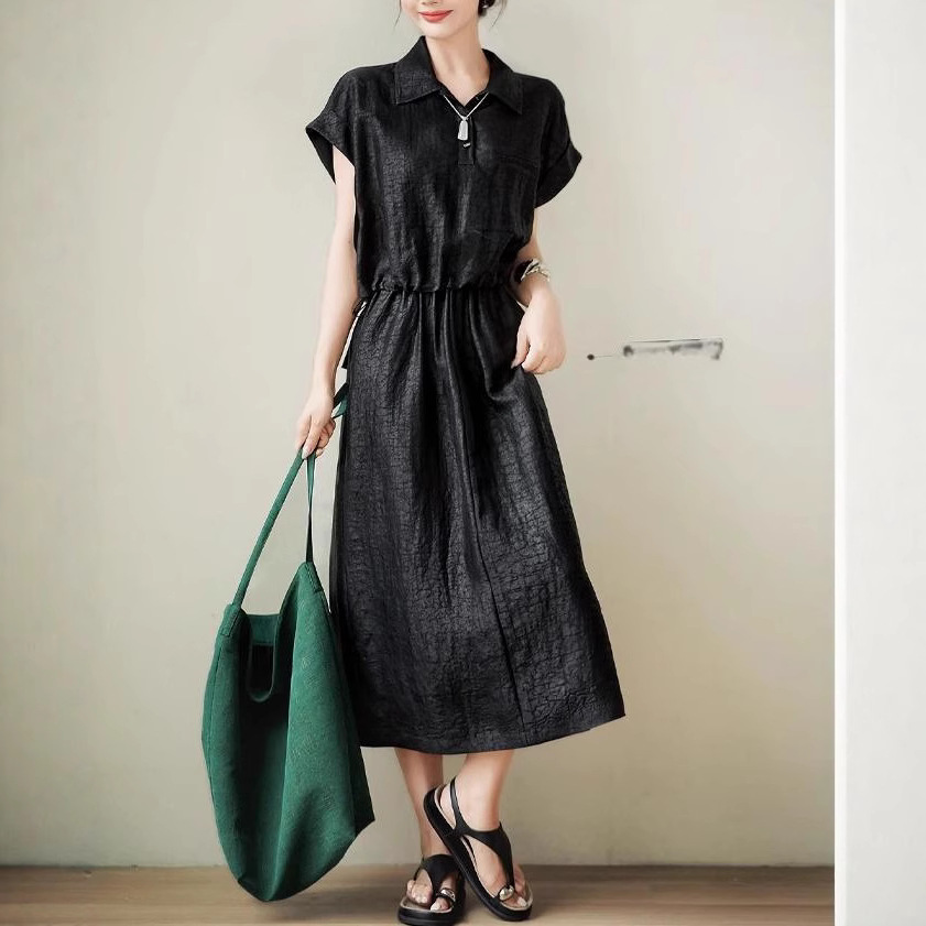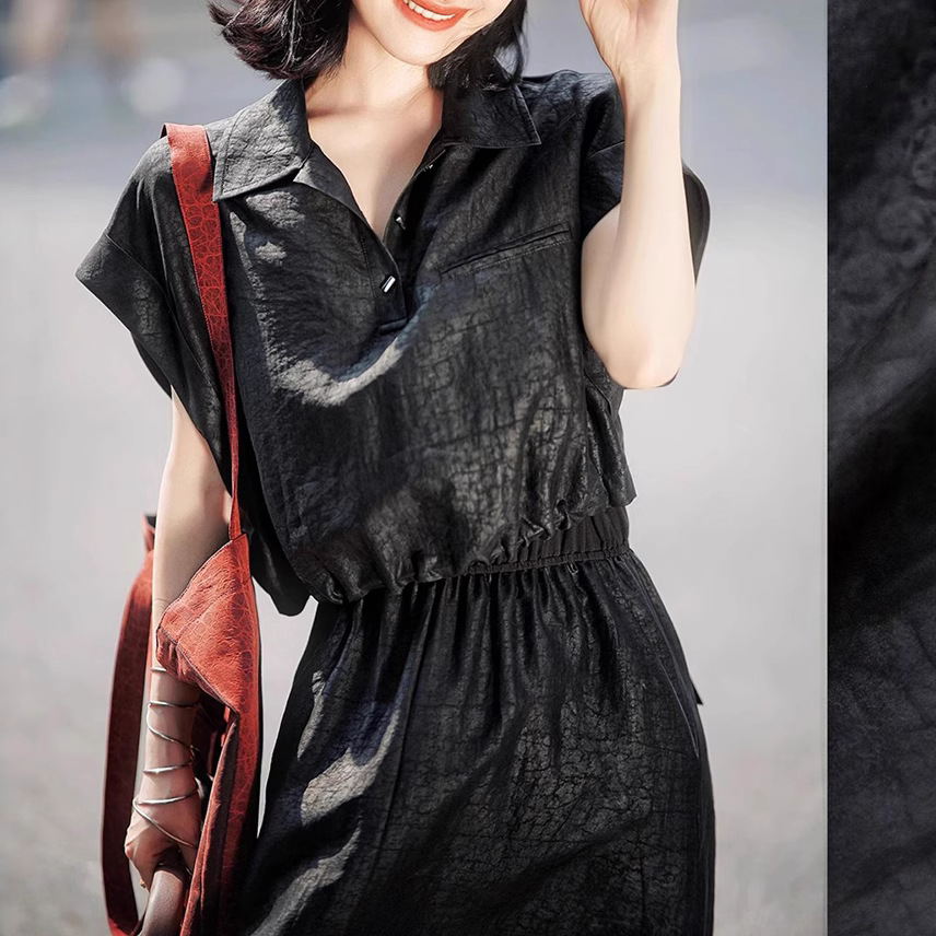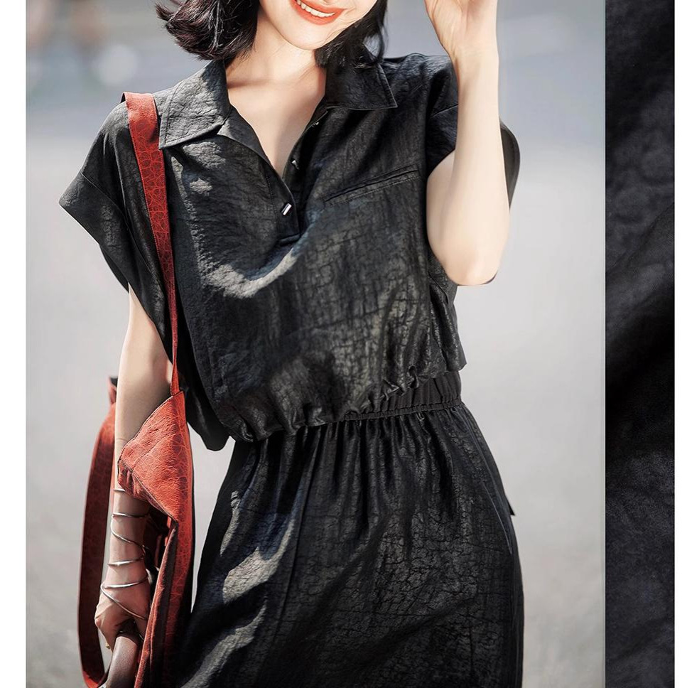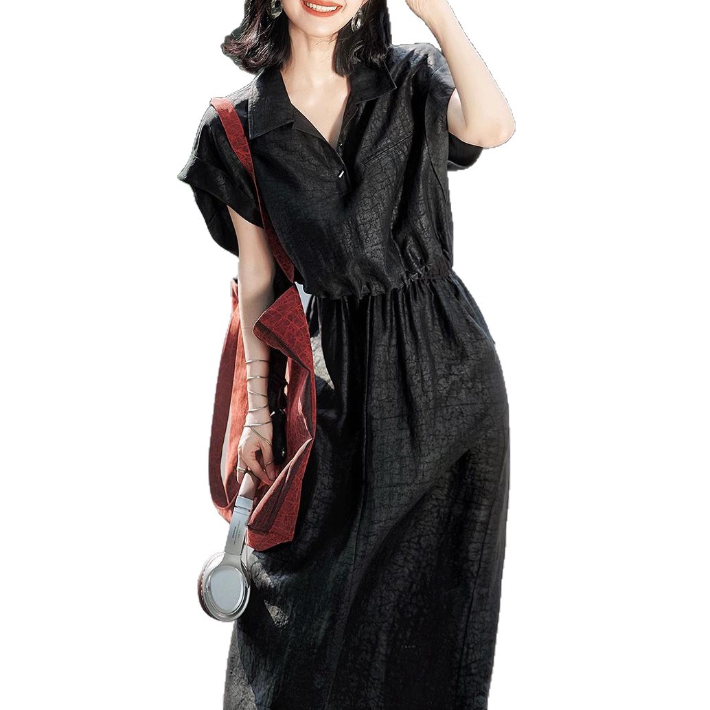 真的是太美了~气质显瘦连衣裙2025夏季女龟裂纹假两件长裙