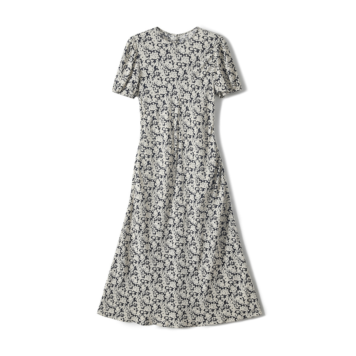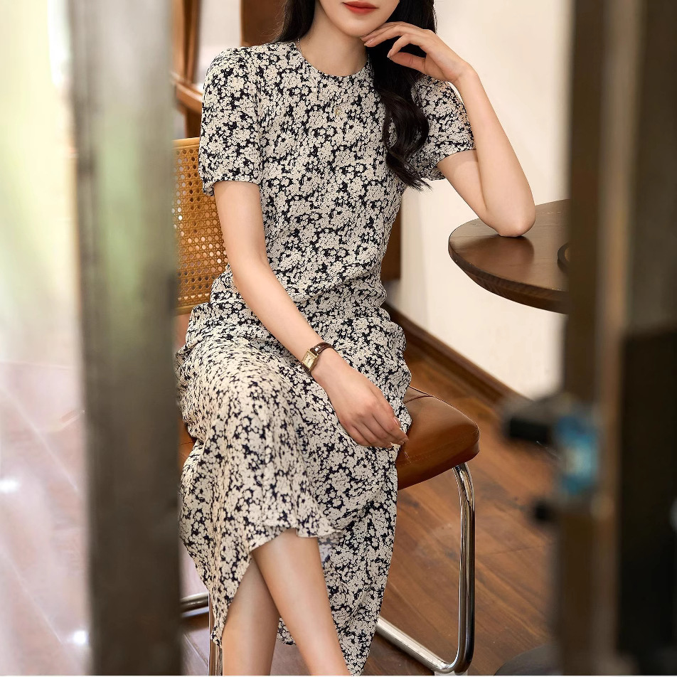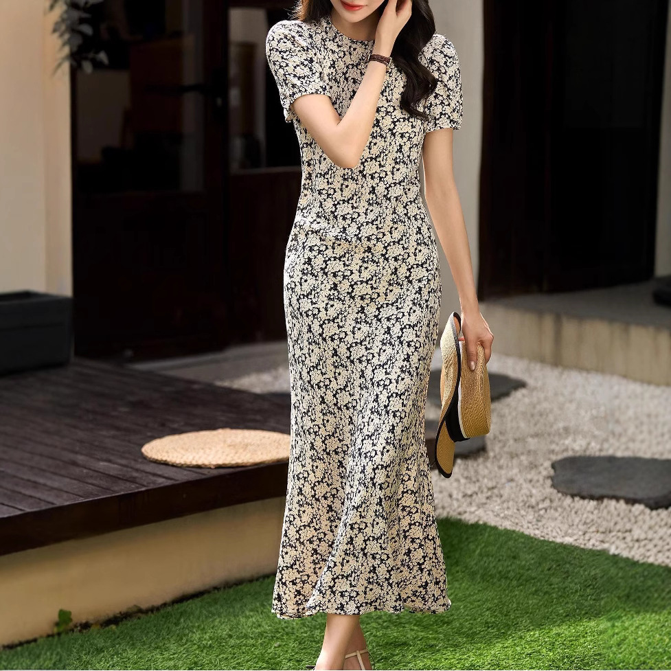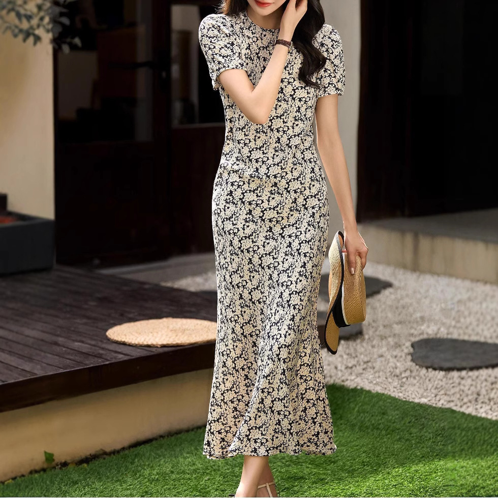 上身巨好看~立体收腰灵巧鱼尾摆黑白碎花长裙夏季女新款