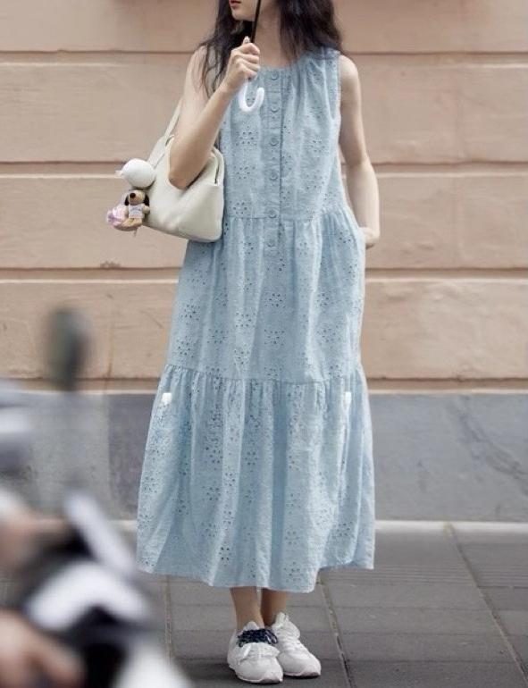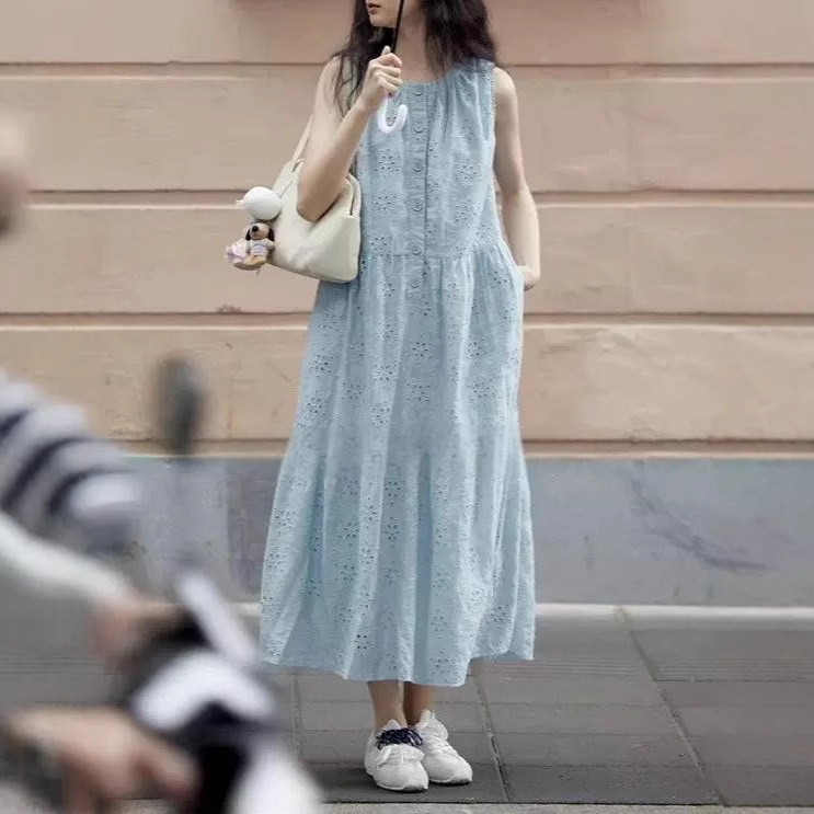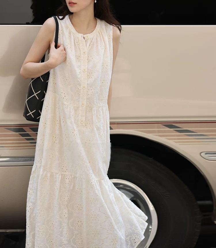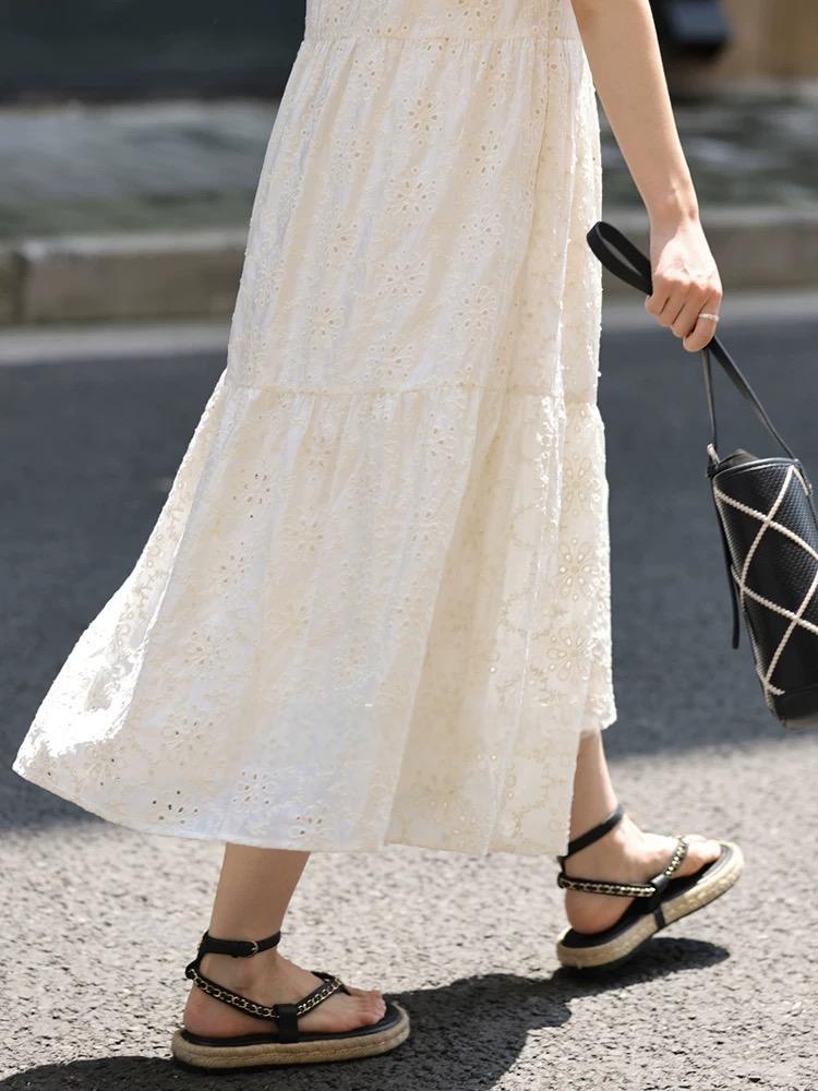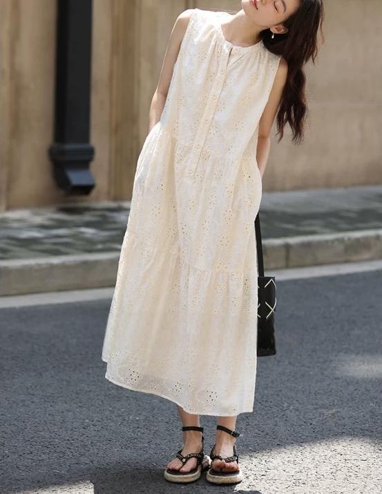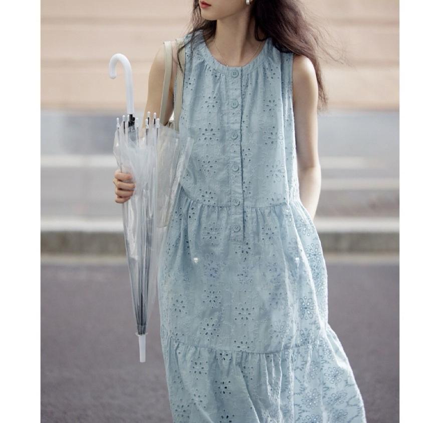 1313法式重工钩花!度假风女25夏精致文艺感90%天丝背心裙连衣裙