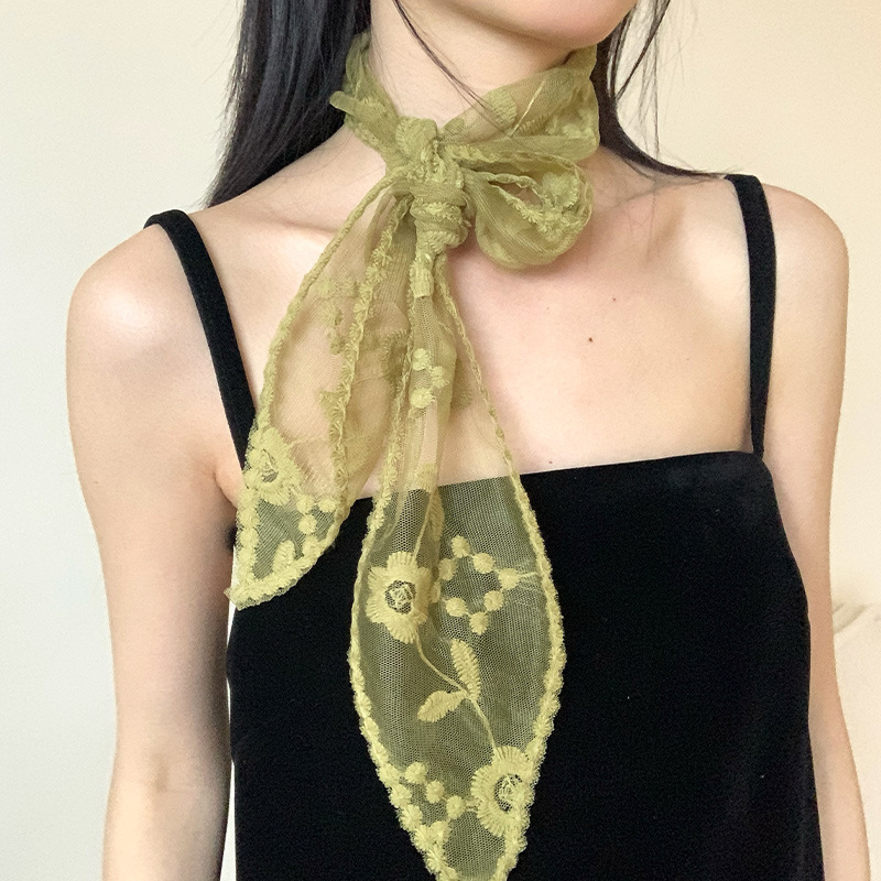 小丝巾颈带复古蕾丝飘带高级感发带长条丝带女装饰围巾项链编发潮