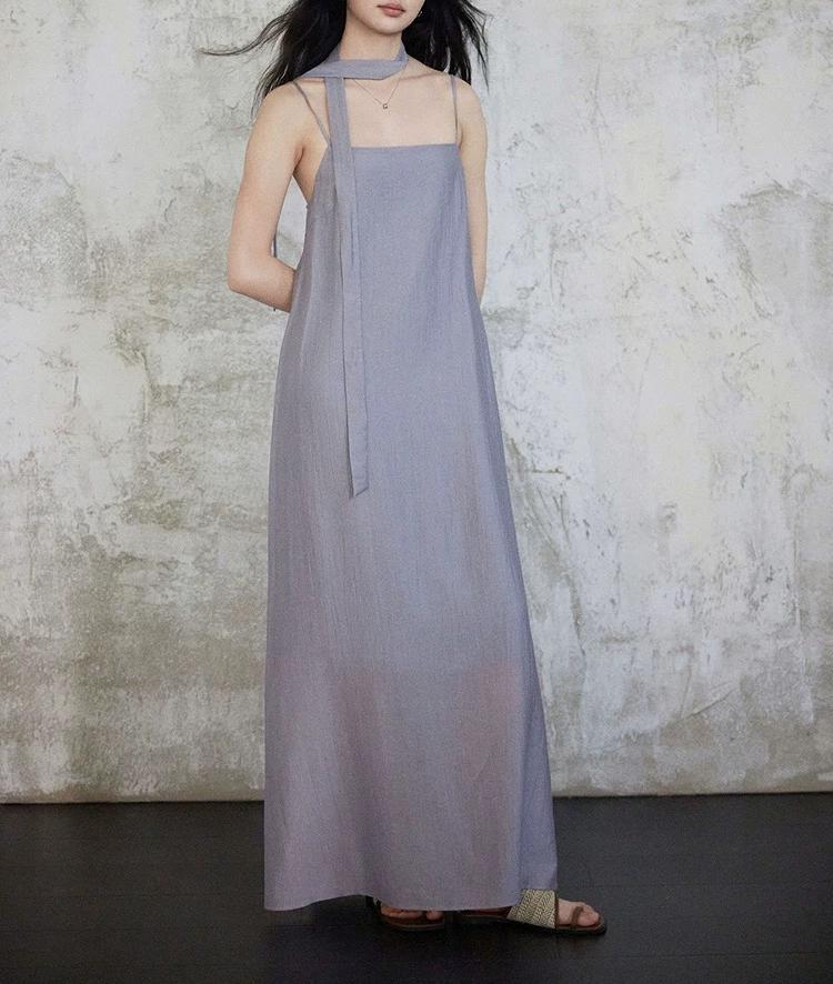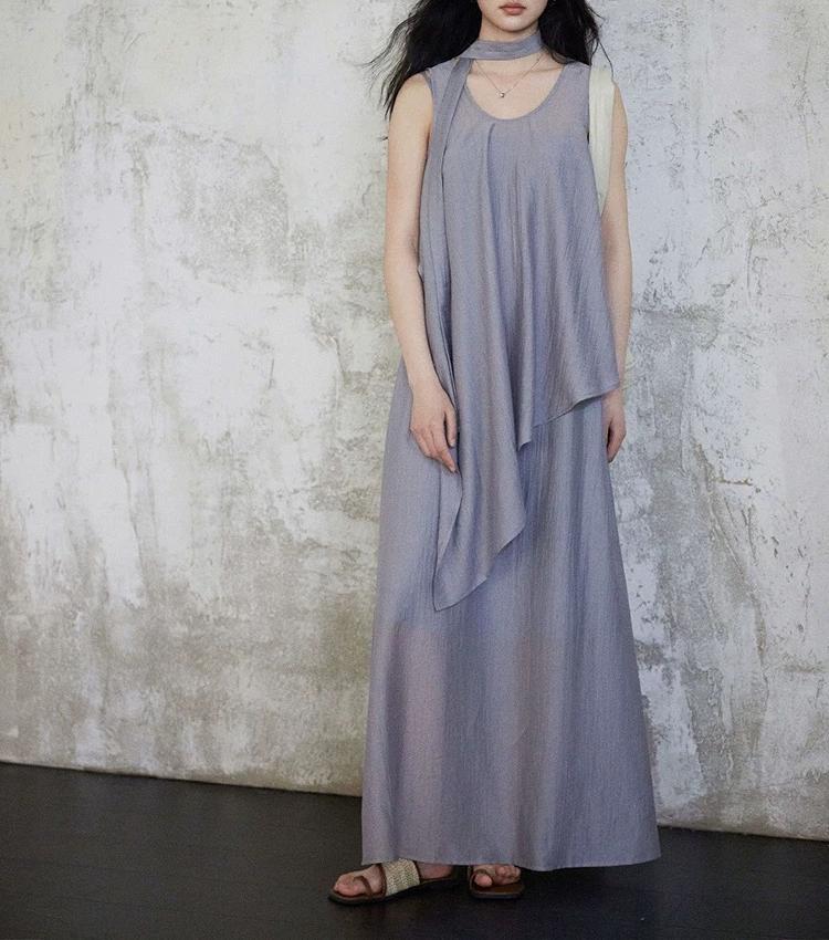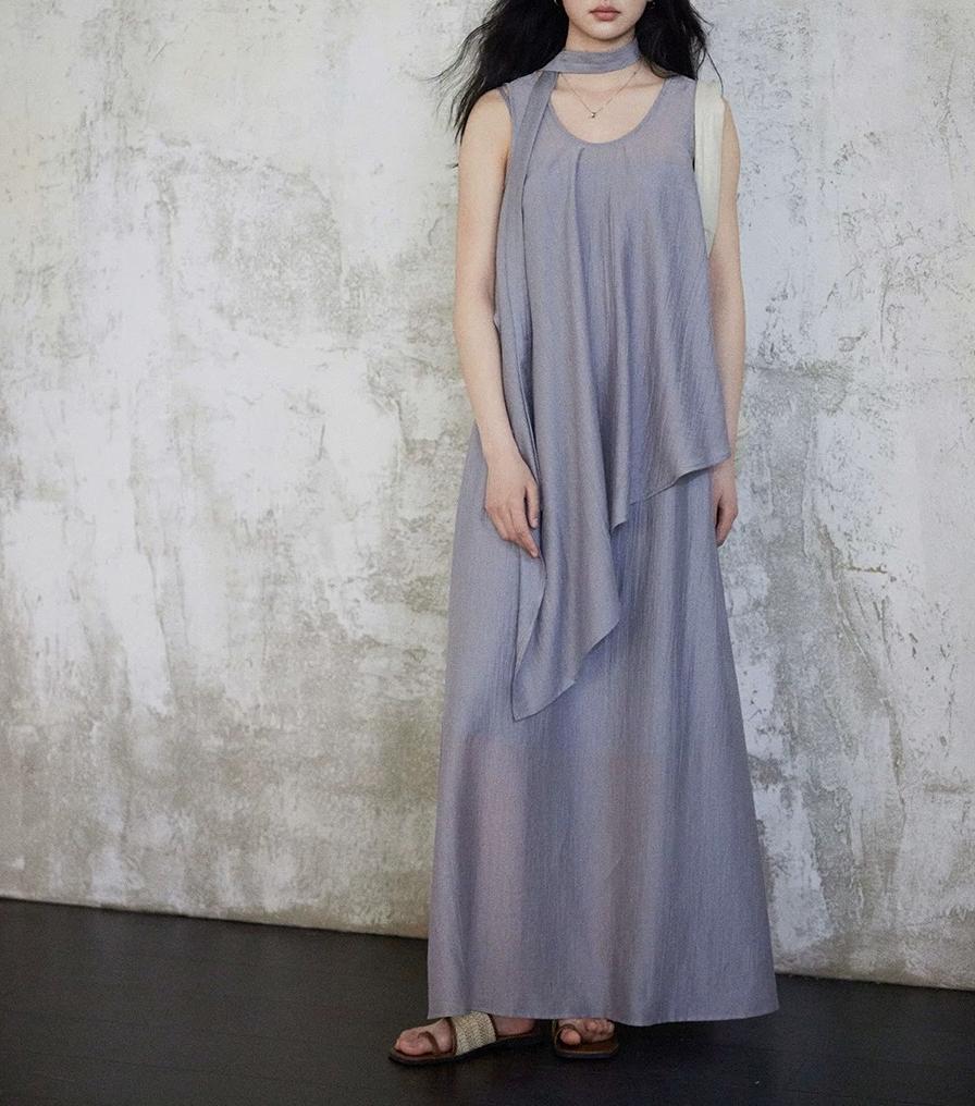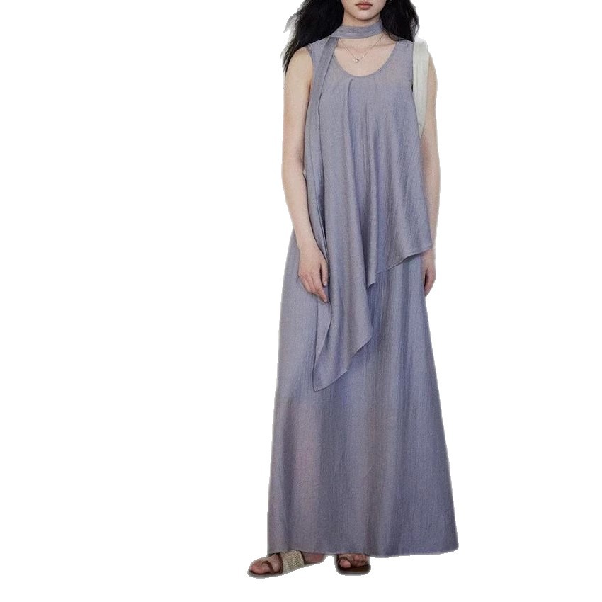 贰羊设计【望舒】天丝飘逸气质慵懒风不规则无袖背心 大摆吊带裙
