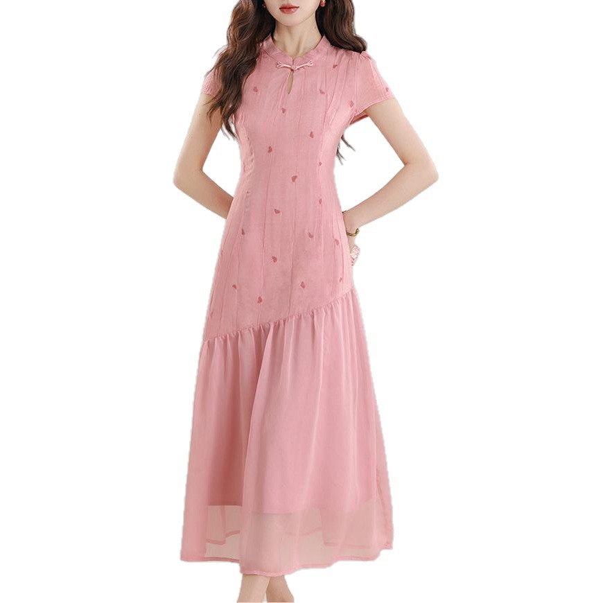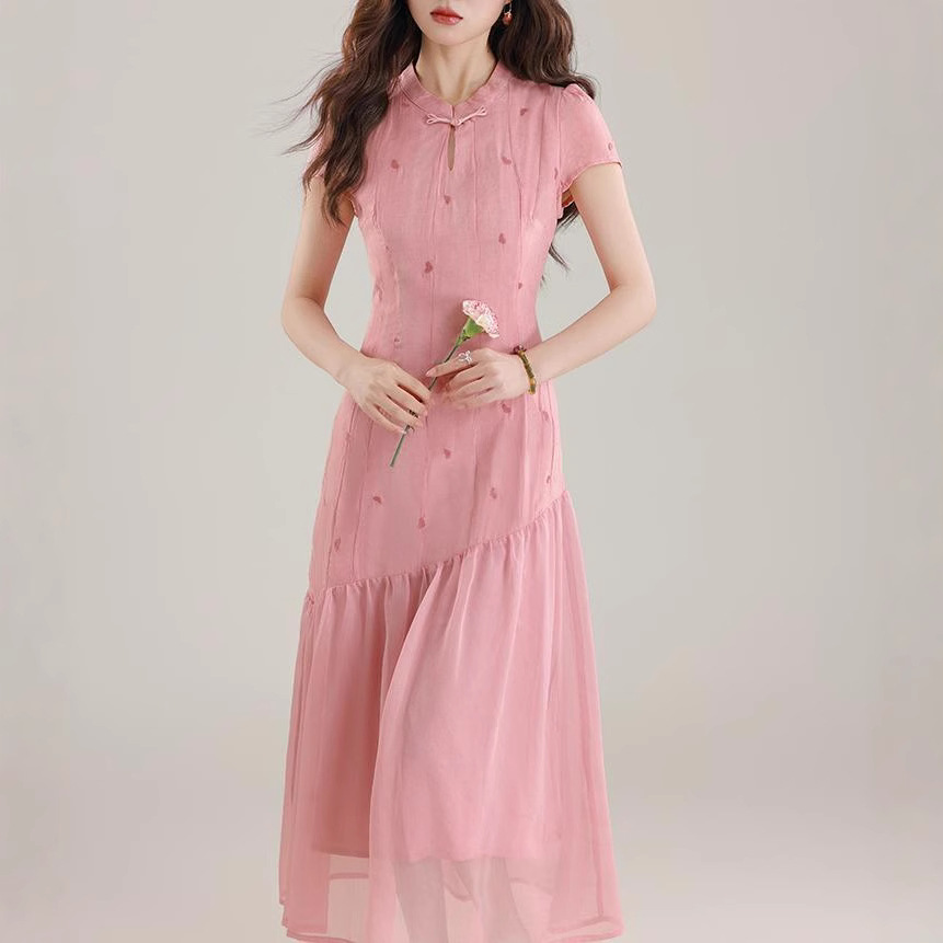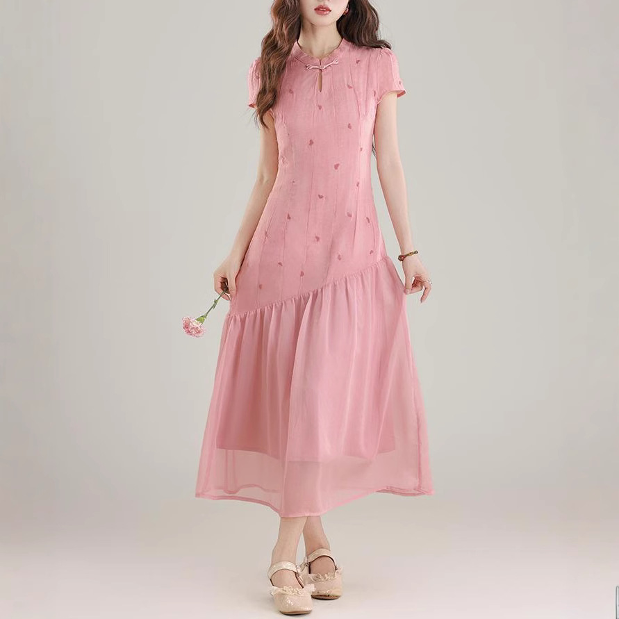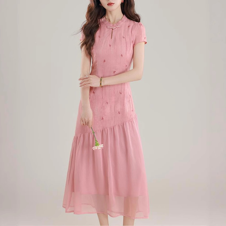 品质推荐 夏日必备 新中式晕染爱心刺绣旗袍夏新品假两件连衣裙