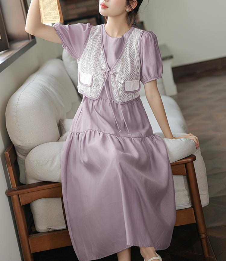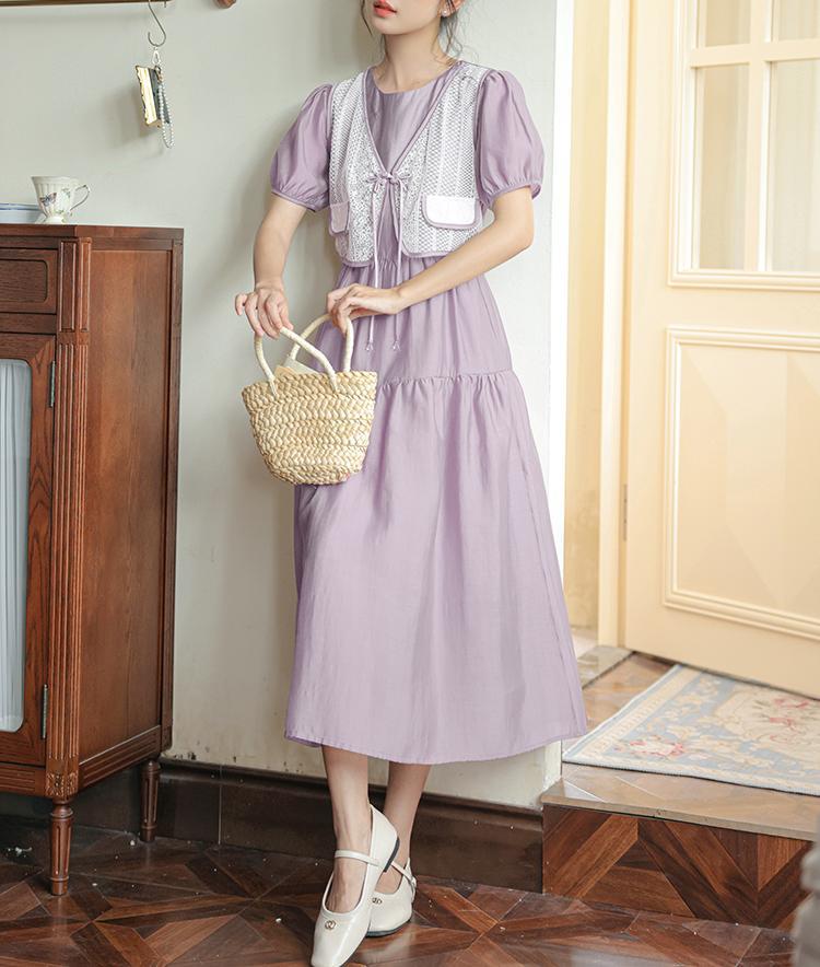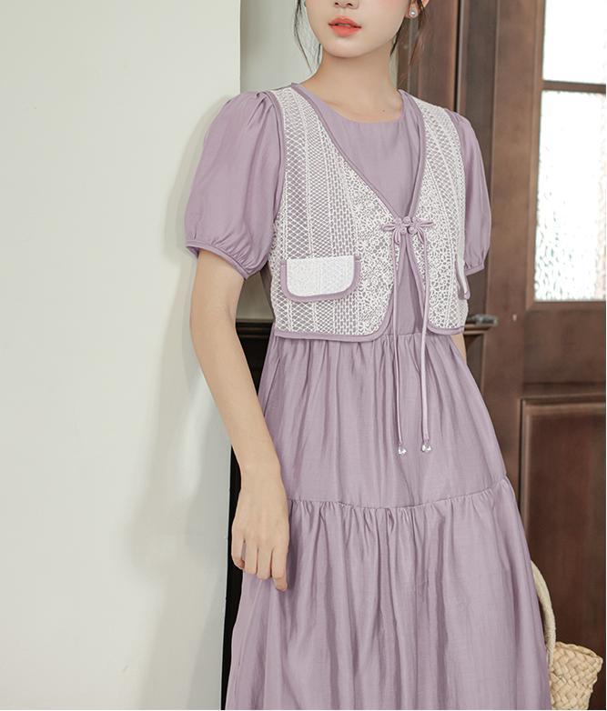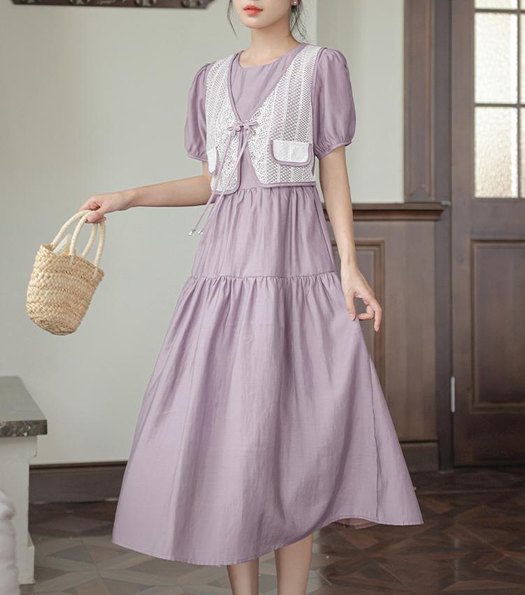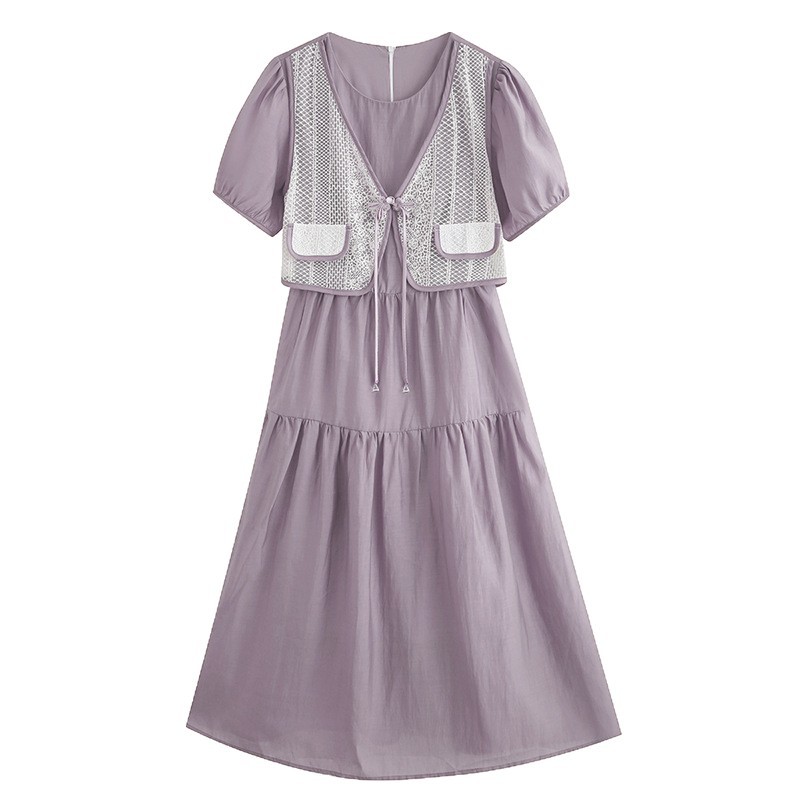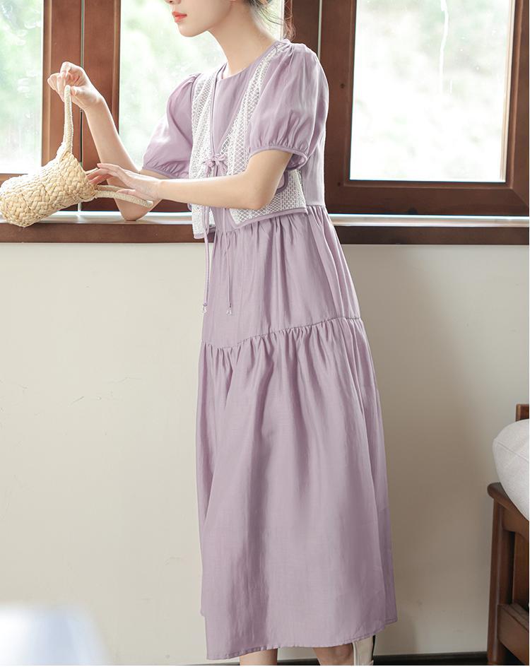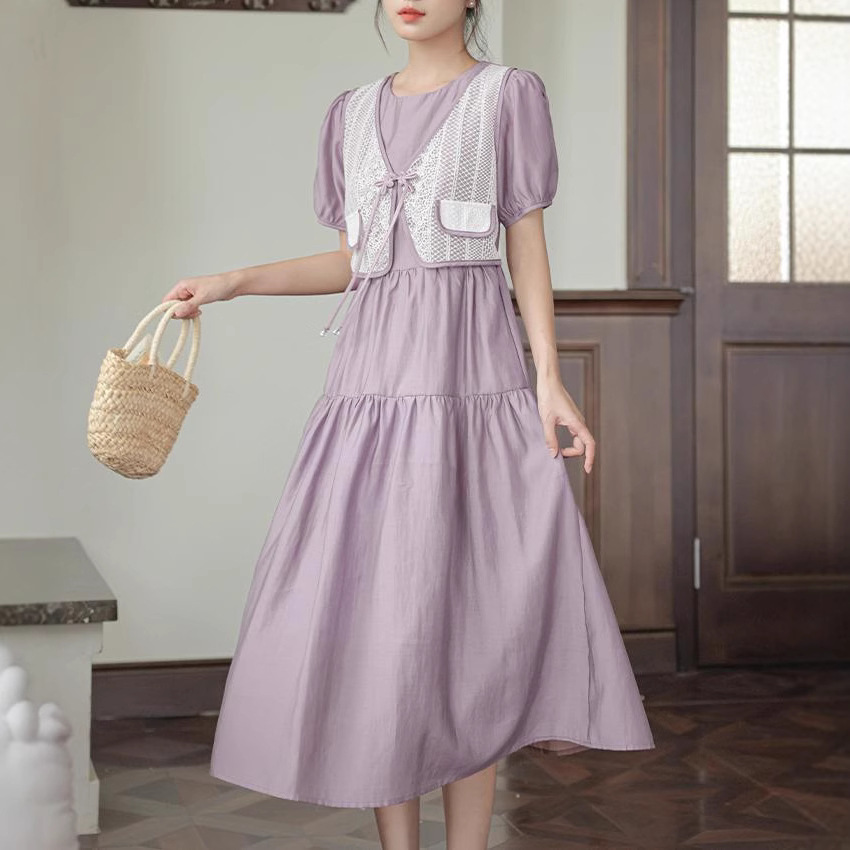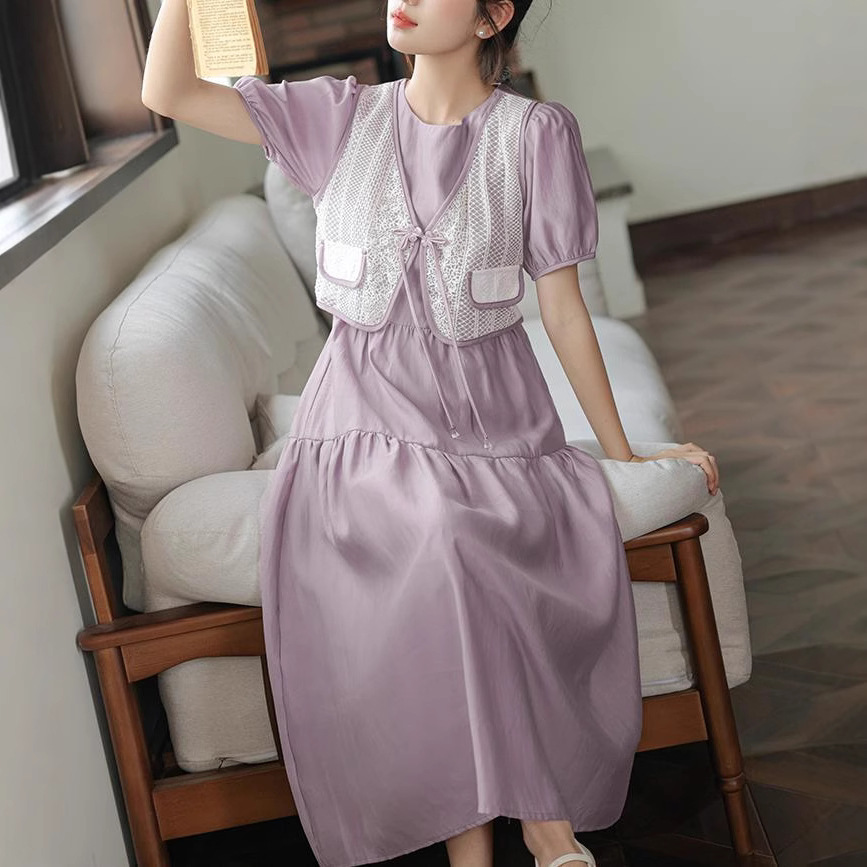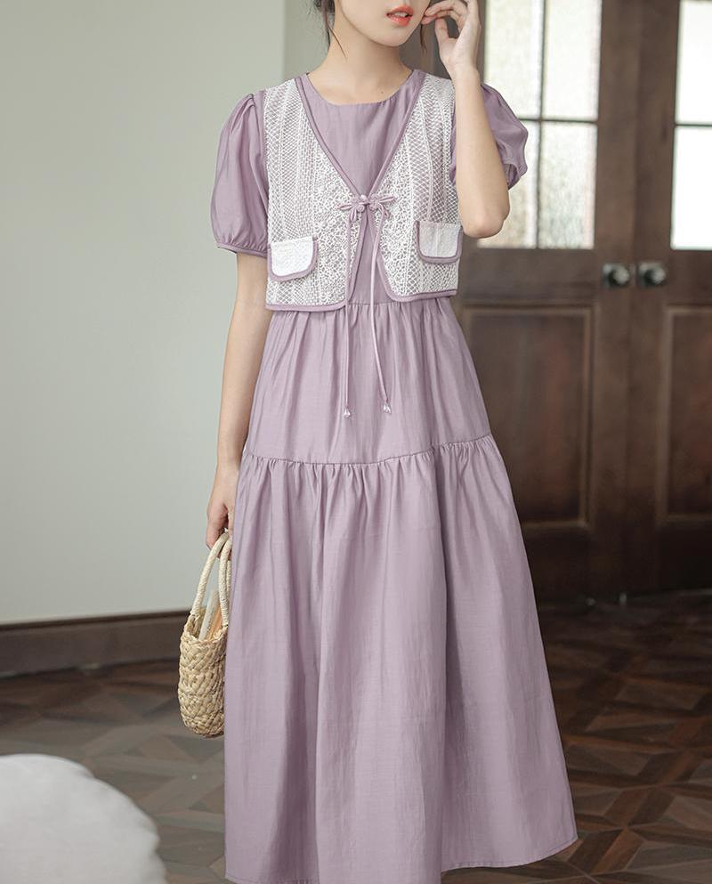 新中国风盘扣假两件连衣裙女设计感高定长裙收腰显瘦气质A字裙子