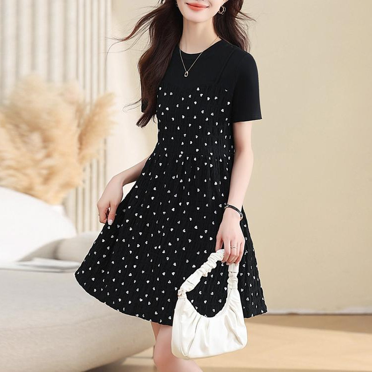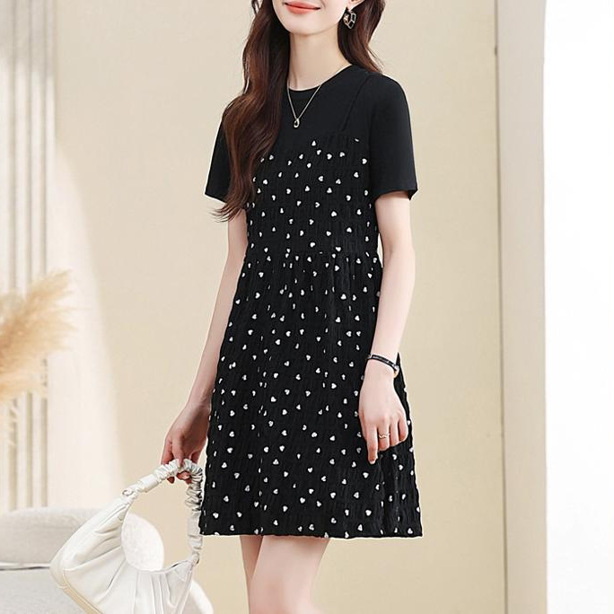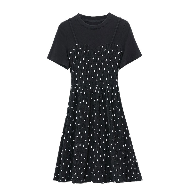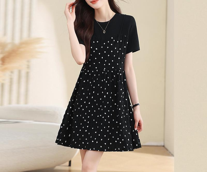 气质百搭 印花浪漫爱心波点!假两件连衣裙女夏季休闲宽松裙子