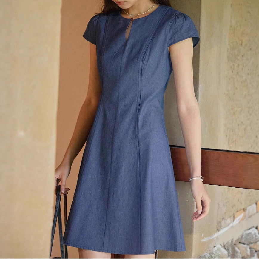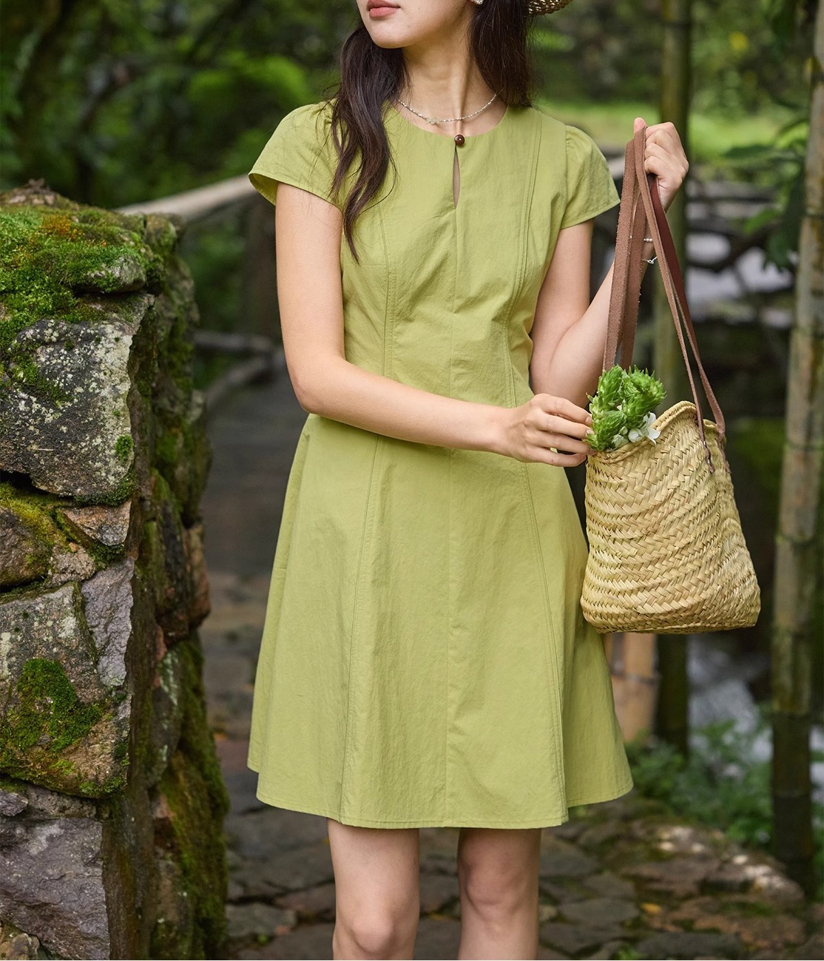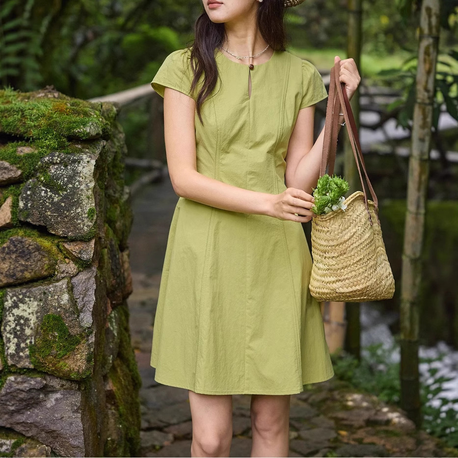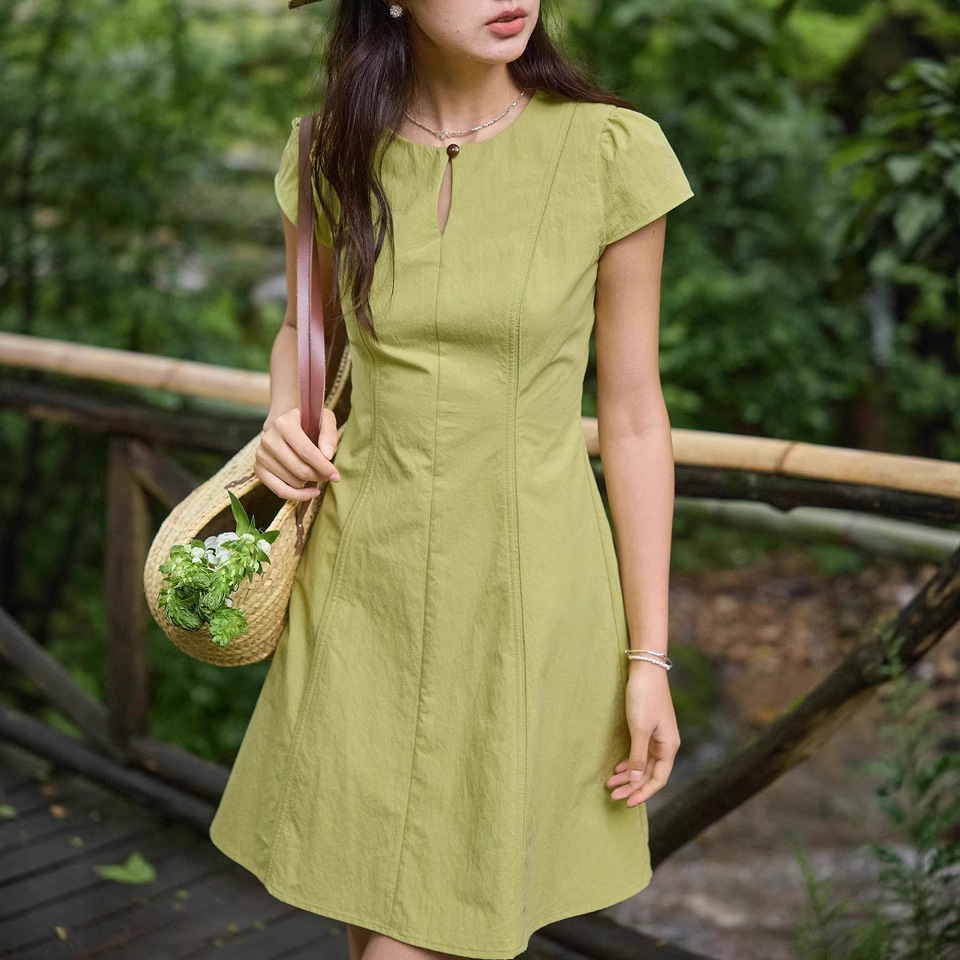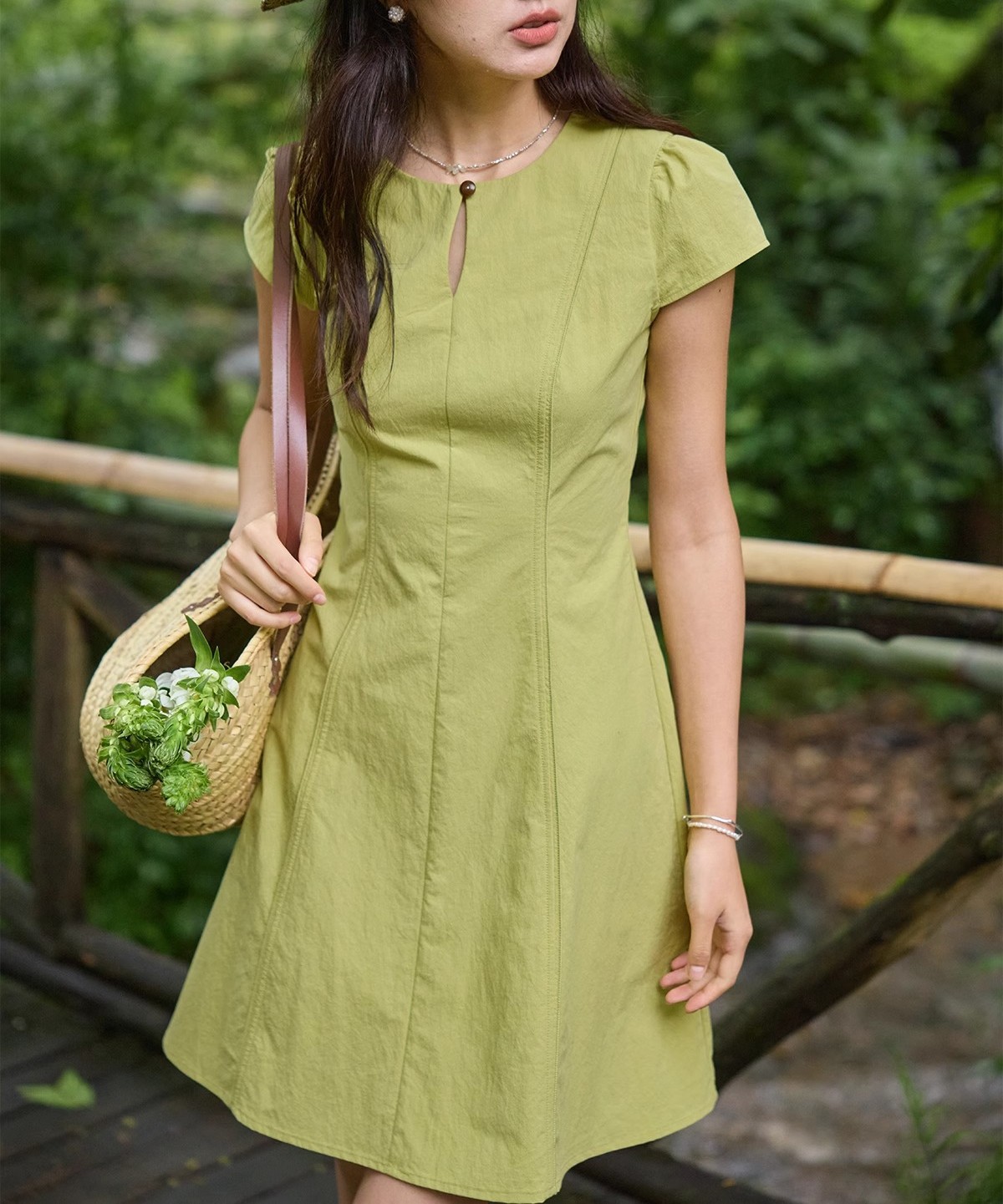 solhgter 25夏季女新款法式复古一粒扣短款收腰显瘦连衣裙