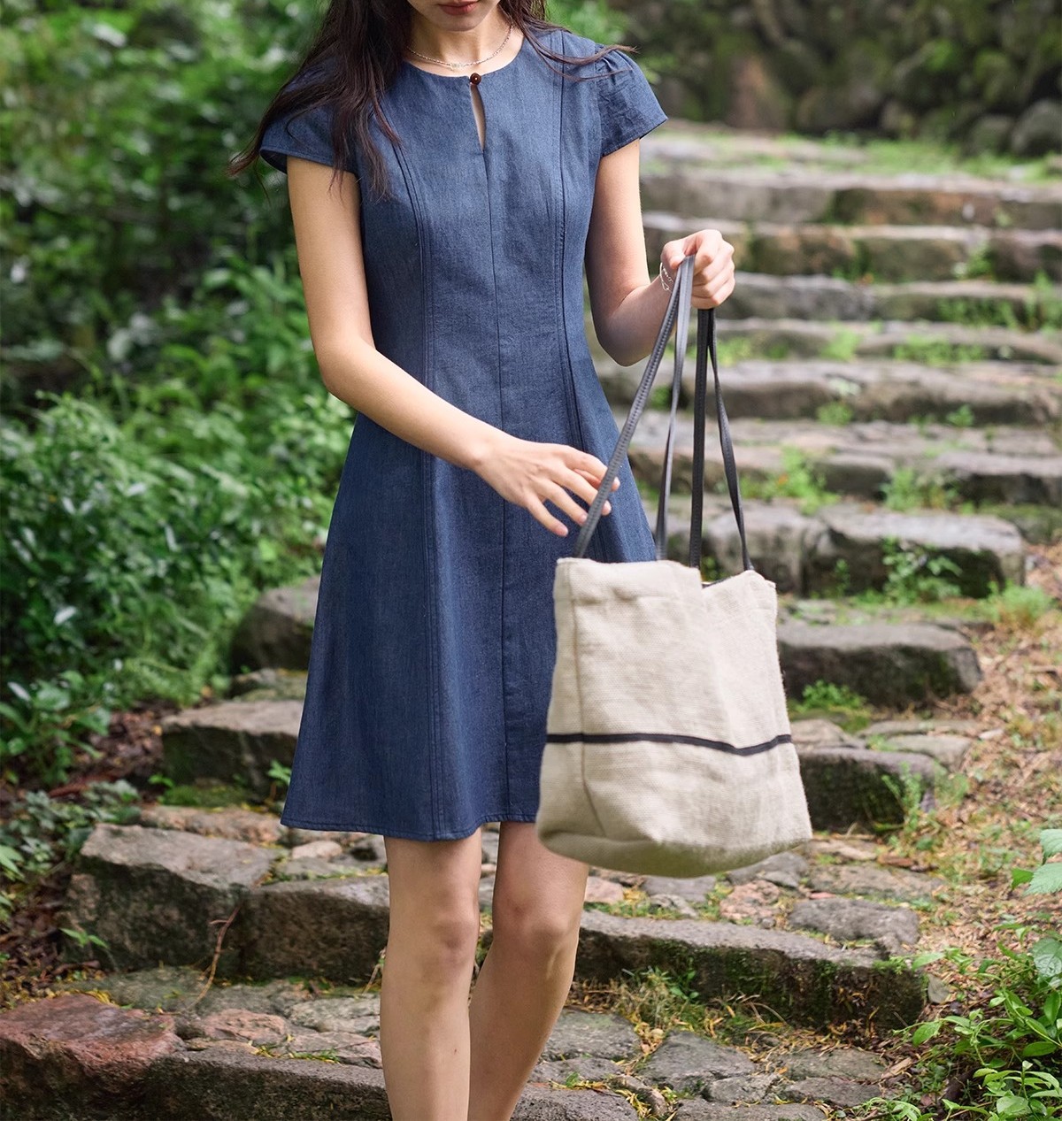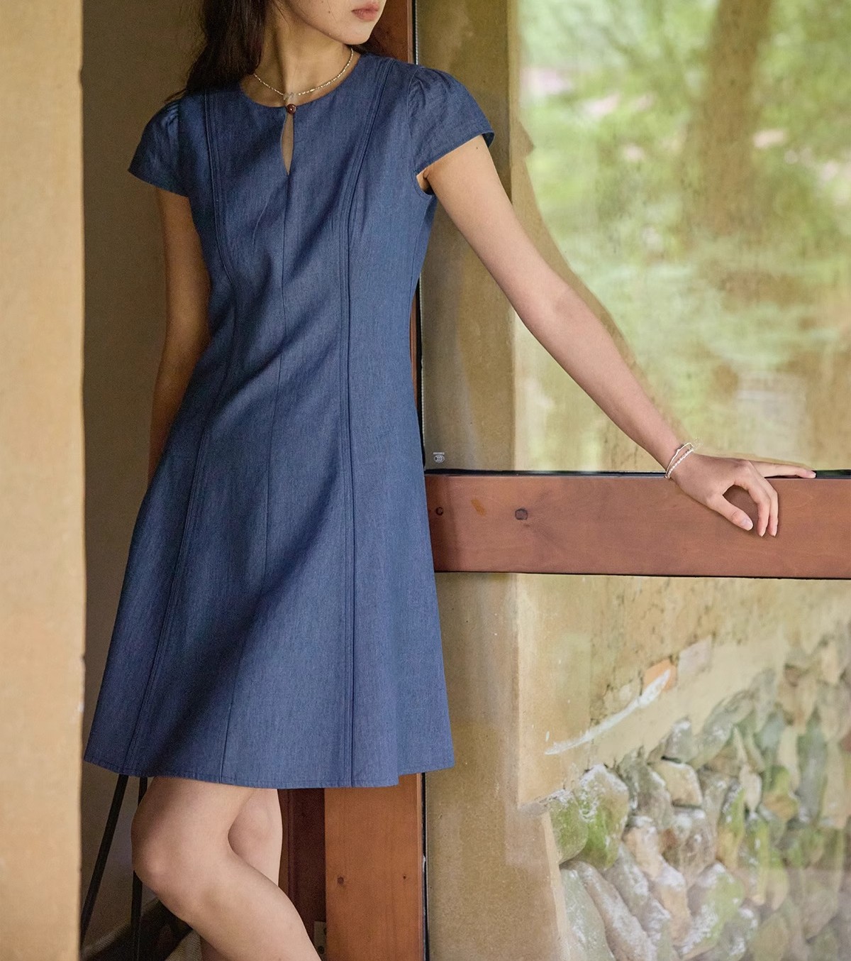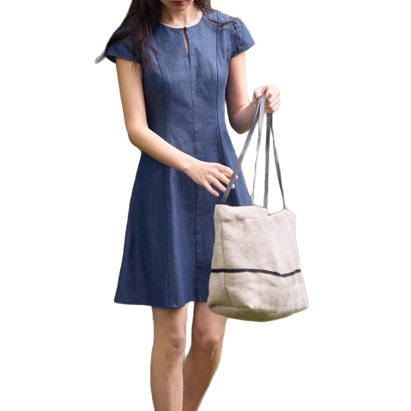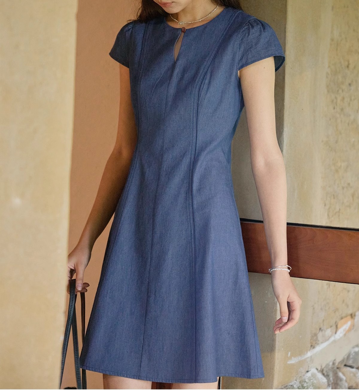 solhgter 25夏季女新款法式复古一粒扣短款收腰显瘦连衣裙