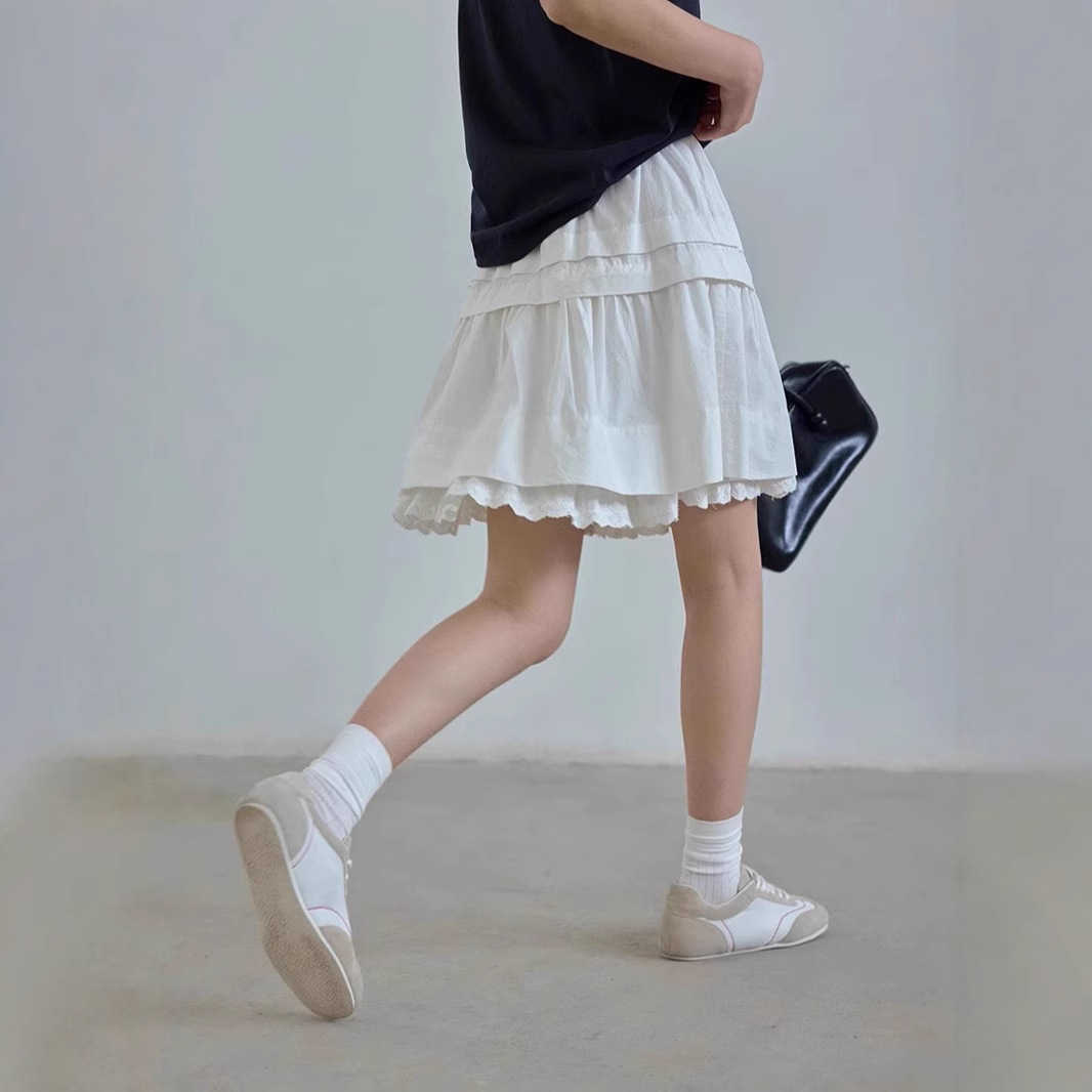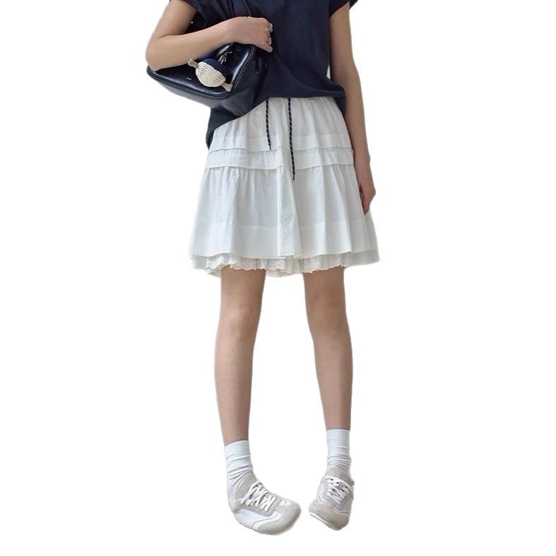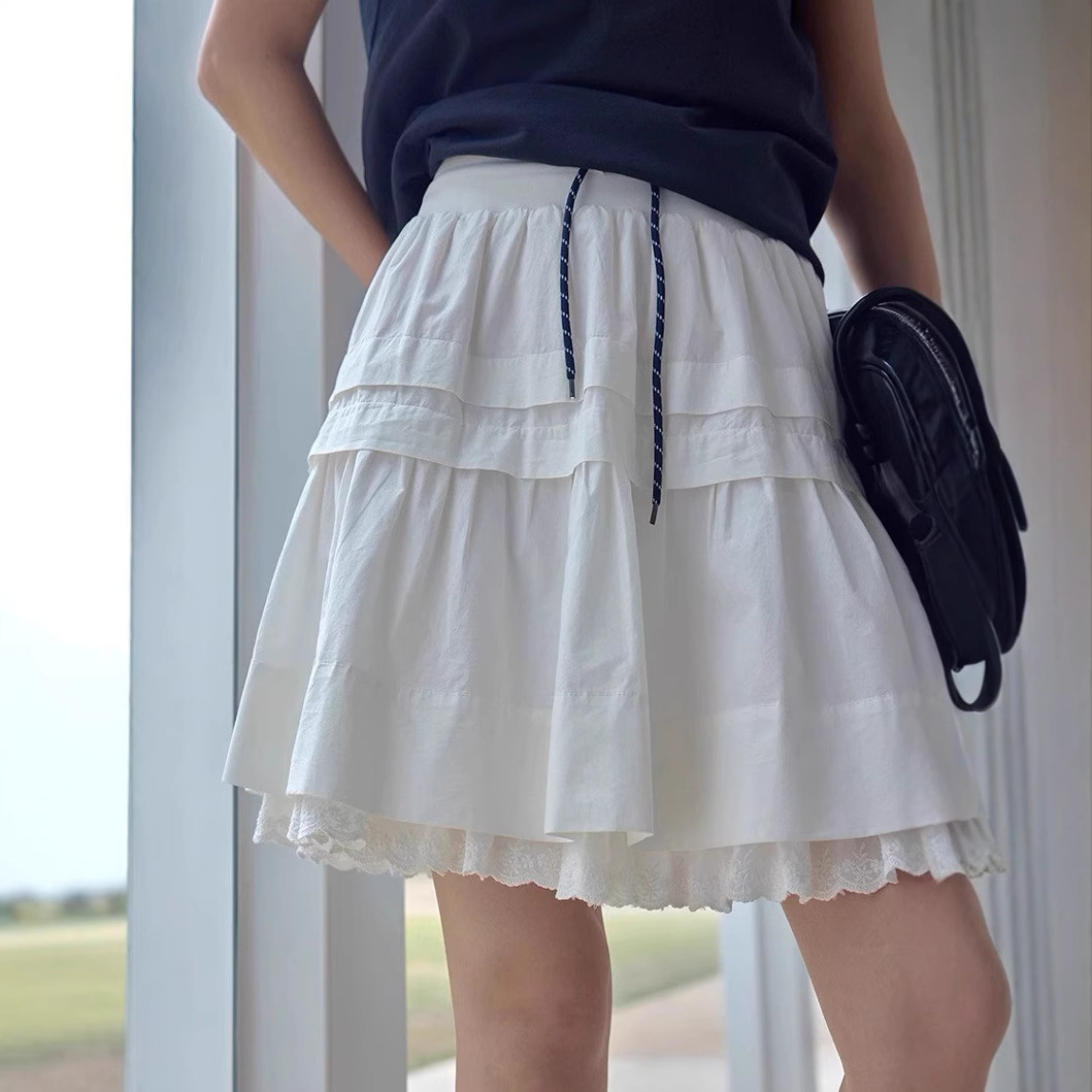 1313白月光活力A字层次花边30%莫代尔小白裙夏女抽绳半身裙短裙