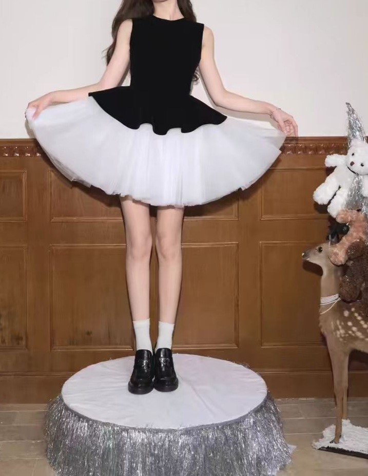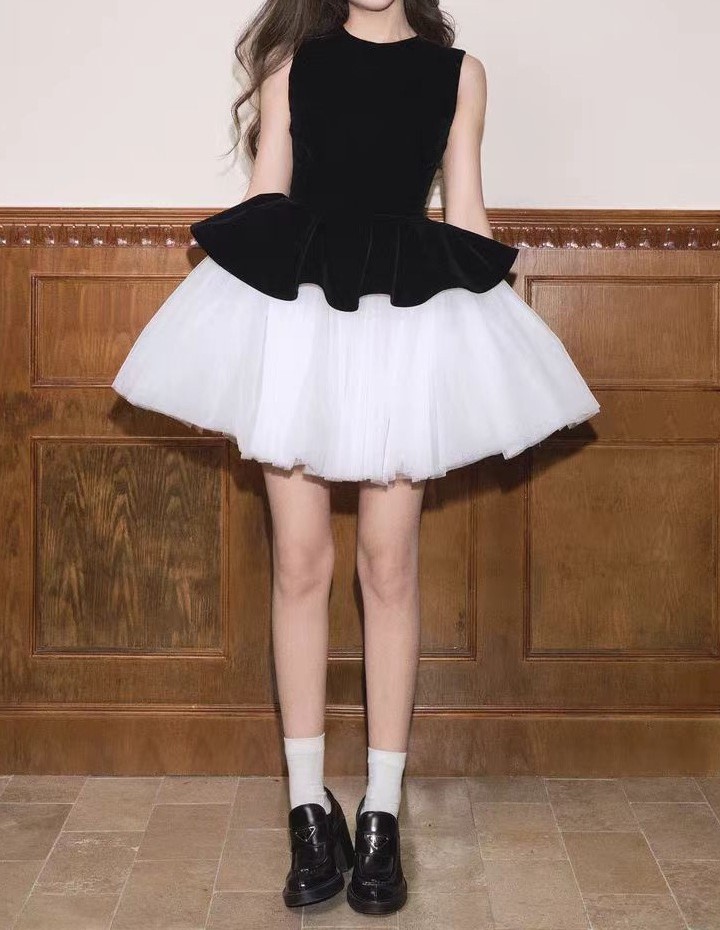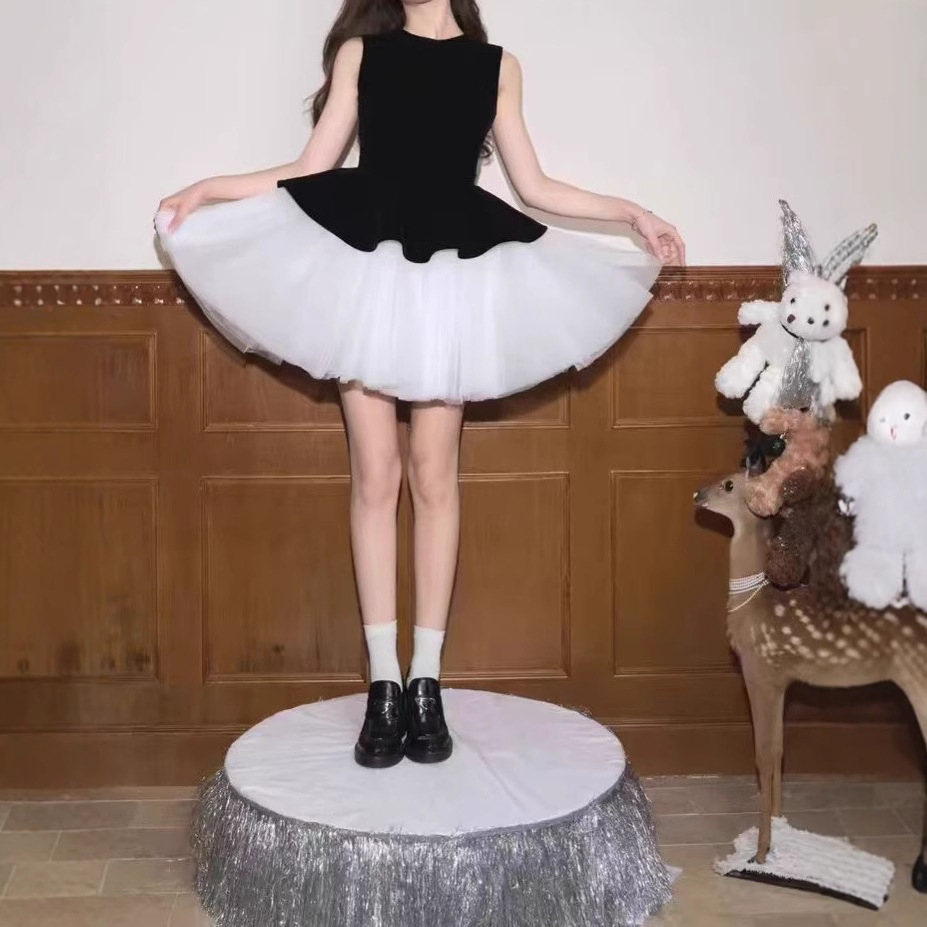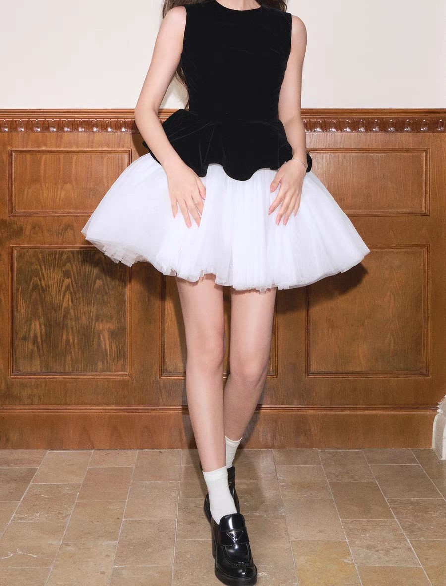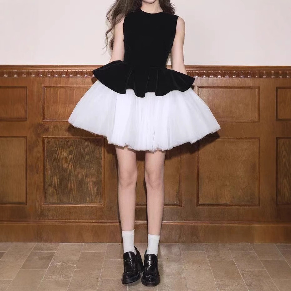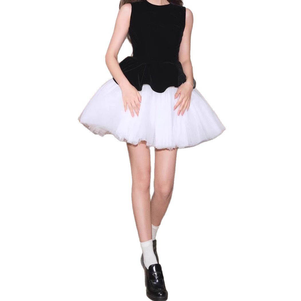 丝绒拼接芭蕾裙/公主风网纱无袖背心连衣裙蓬蓬裙女夏季新款