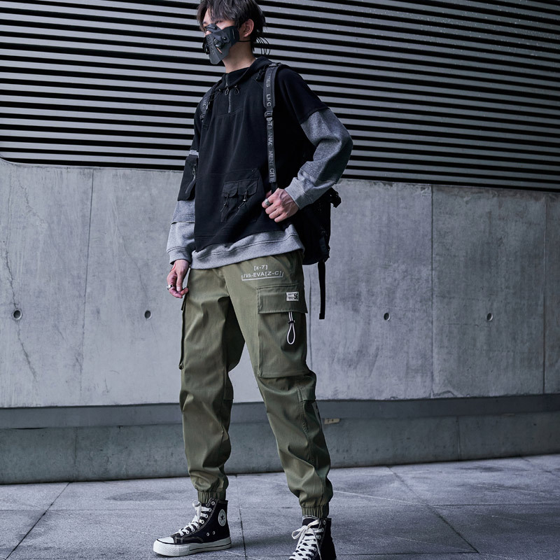 新款港风宽松大码工装裤男潮流青少年束脚九分男休闲裤