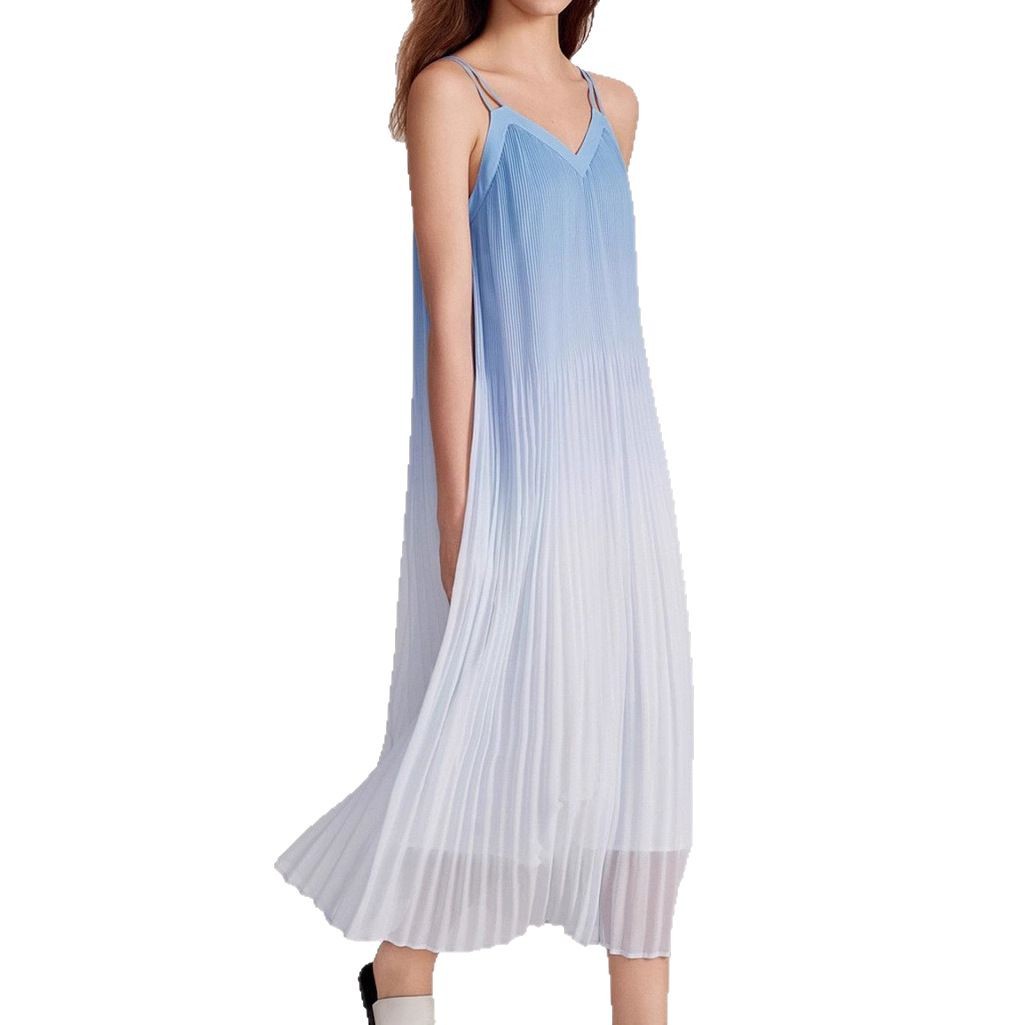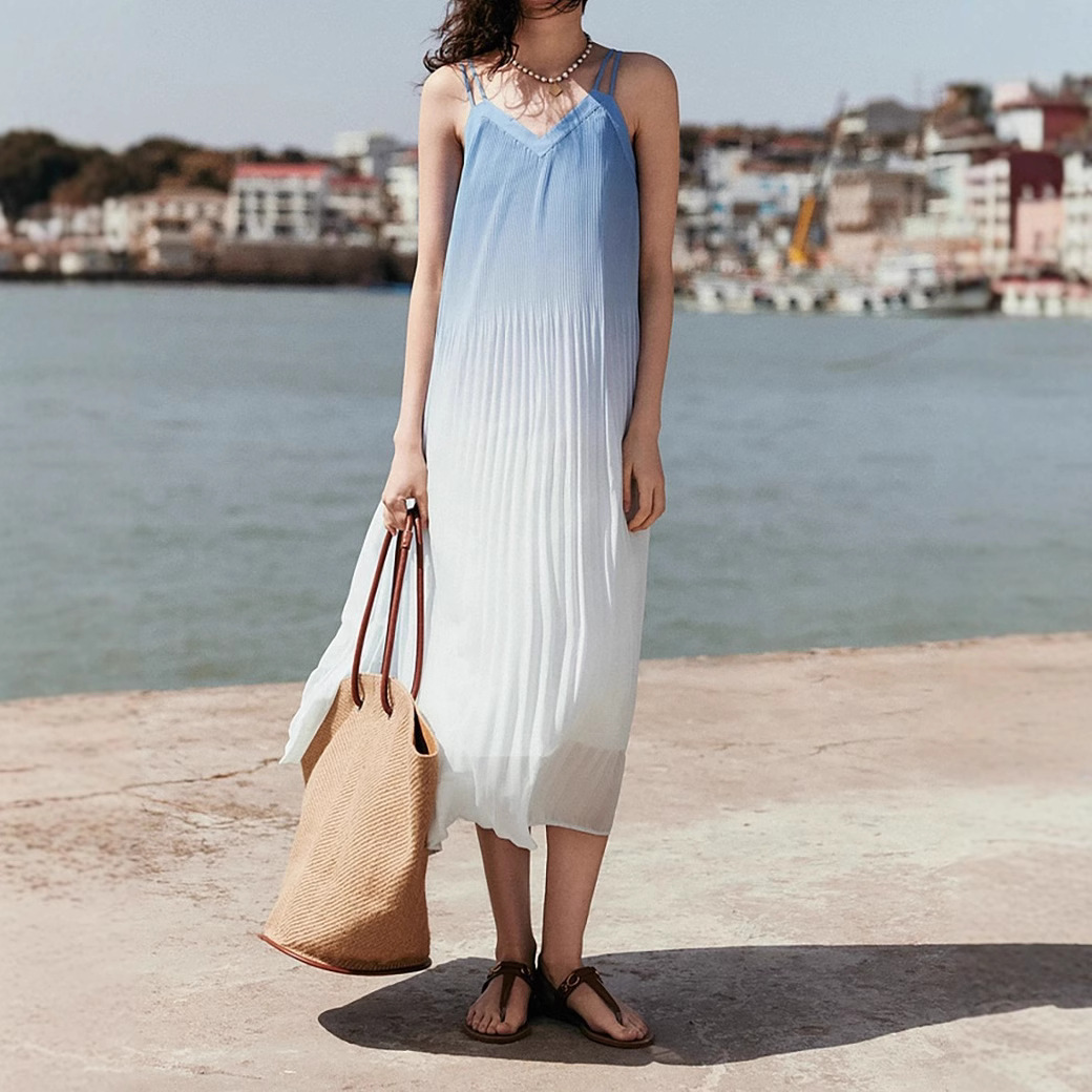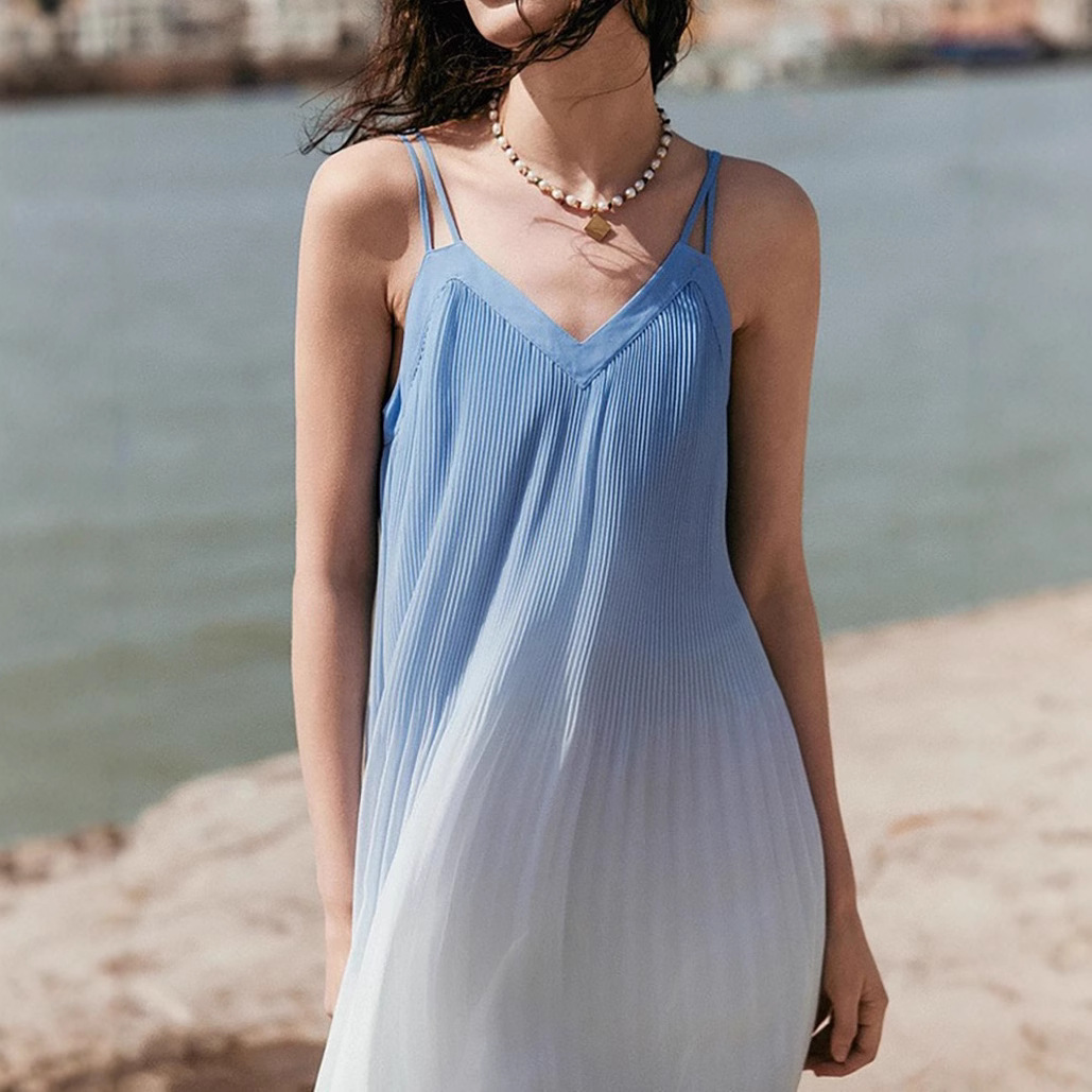 ELEL 法式海边度假风渐变吊带连衣裙女2025夏新款长款无袖海浪裙