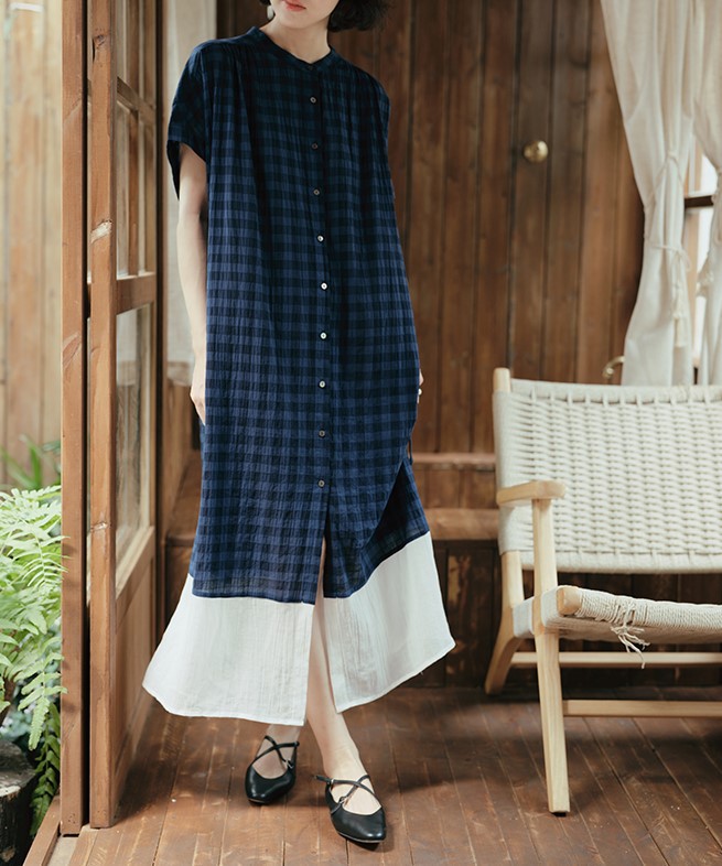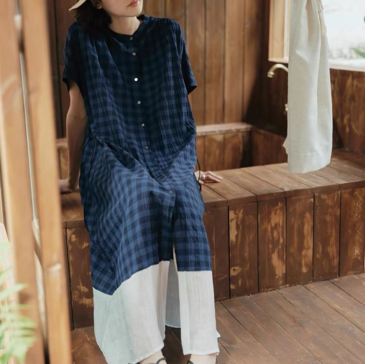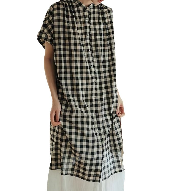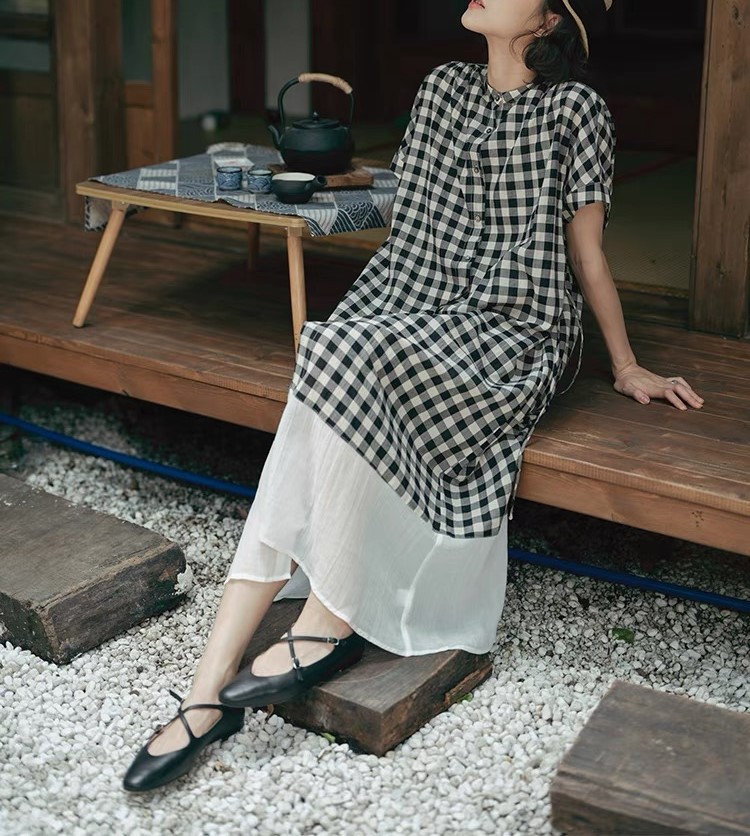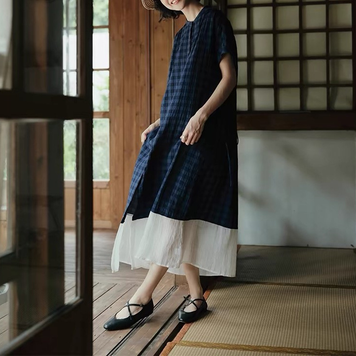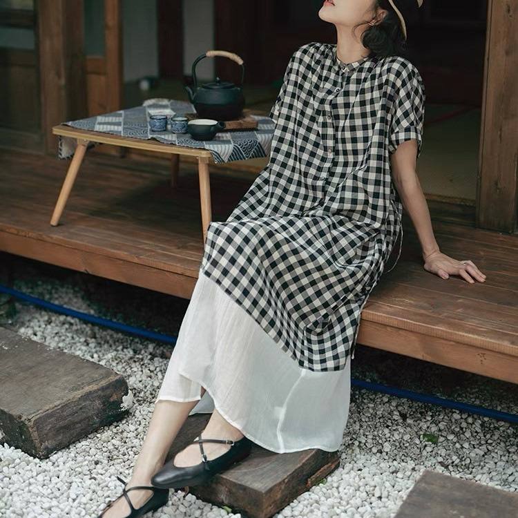 格子圆领连衣裙休闲松驰感日系风格穿搭女夏季新款百搭裙子