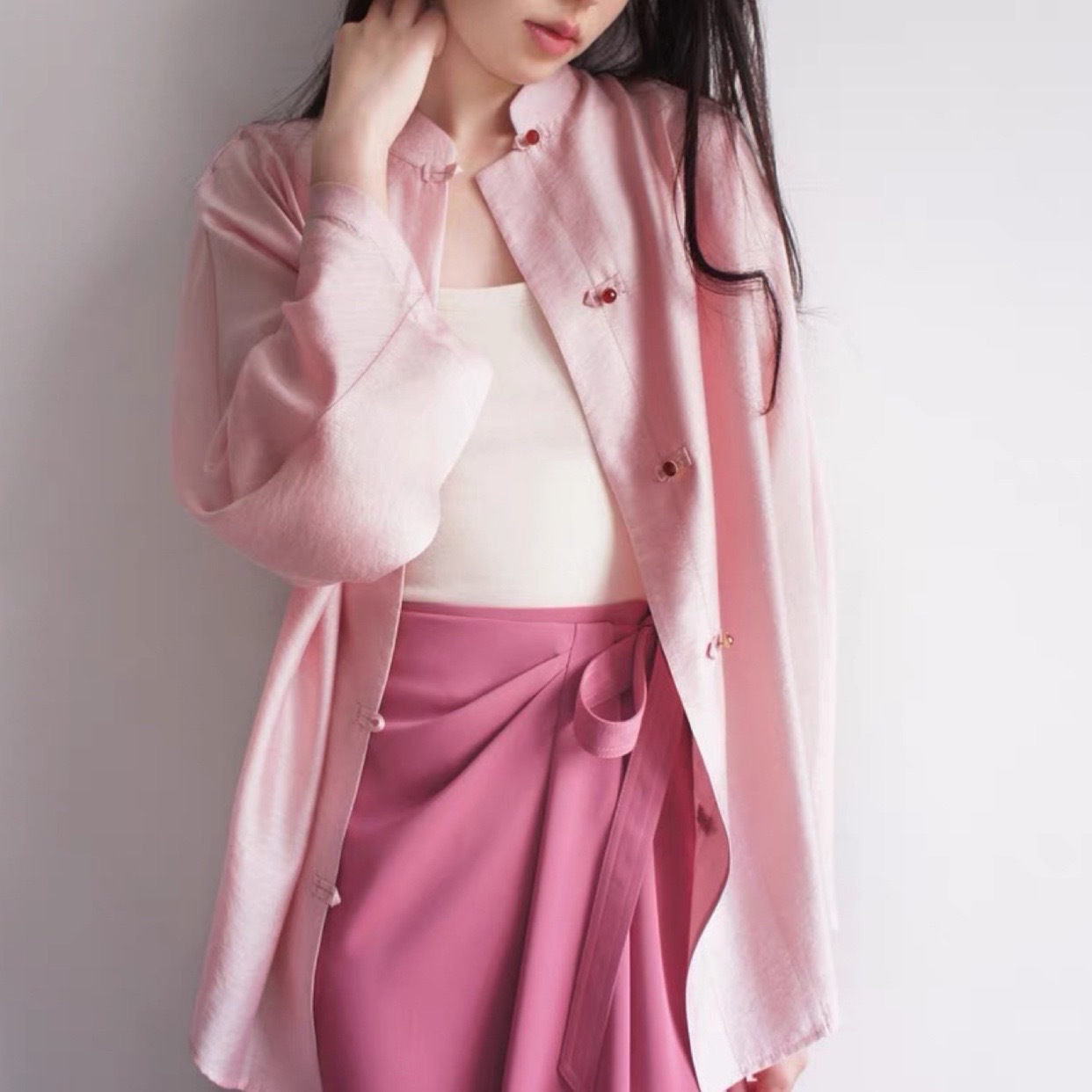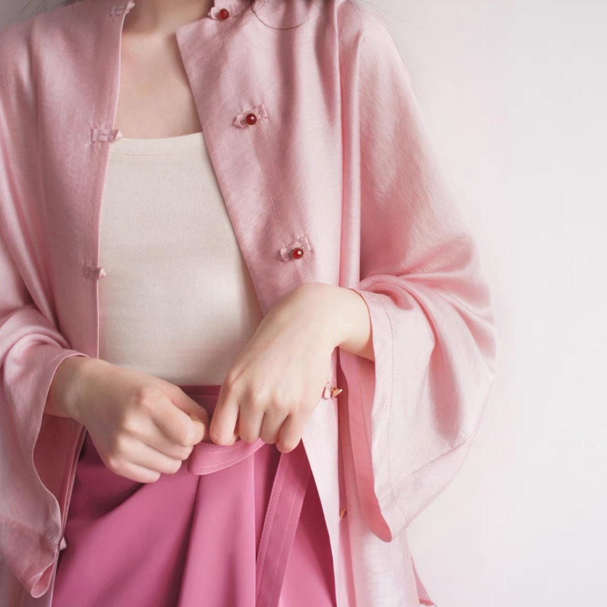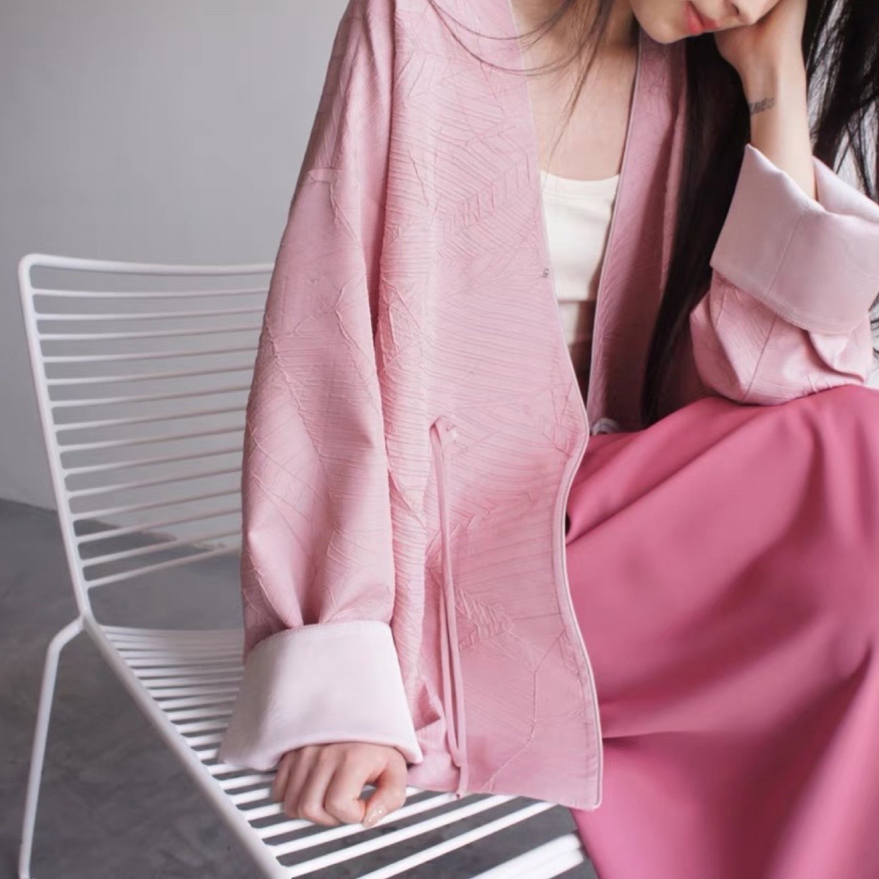 蔷薇粉系带不对称高腰过膝H型设计感收褶浪漫半身裙