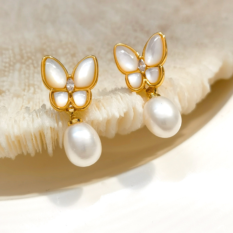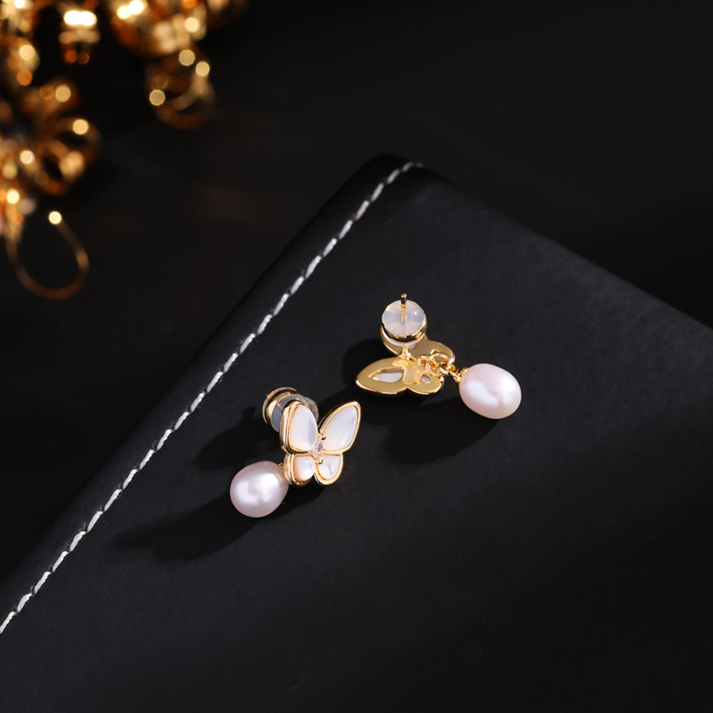 高版本925银+加厚真金电镀S925韩国气质蝴蝶耳钉甜美ins风养殖珍