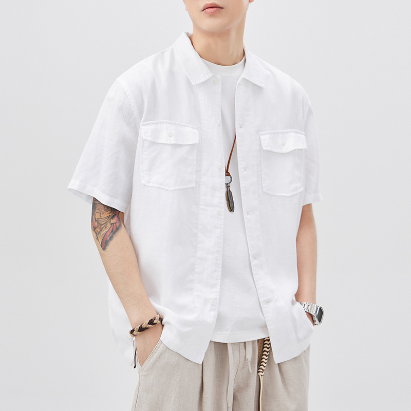 2025年凉感工装短袖衬衫男夏季日系白色舒适衬衣青少年港风上衣