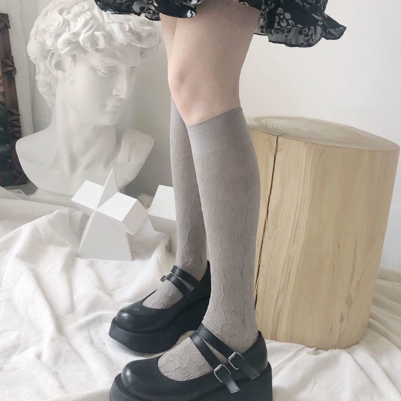 白色蕾丝小腿袜子女夏季薄款半腿中筒jk洛丽塔玫瑰花朵lolita袜子