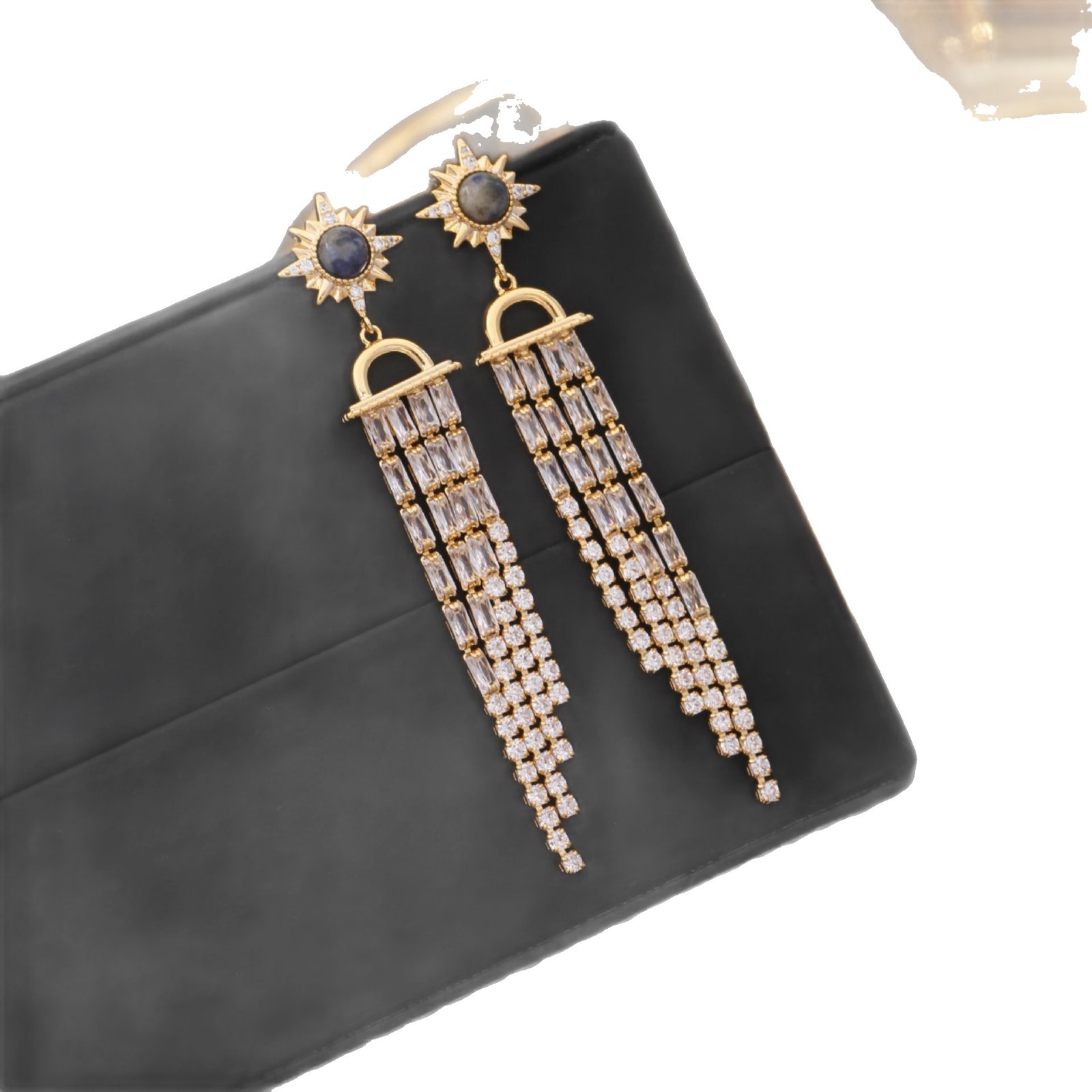 八芒星高级感锆石流苏耳环S925银时尚气质小众复古长款潮流耳饰女
