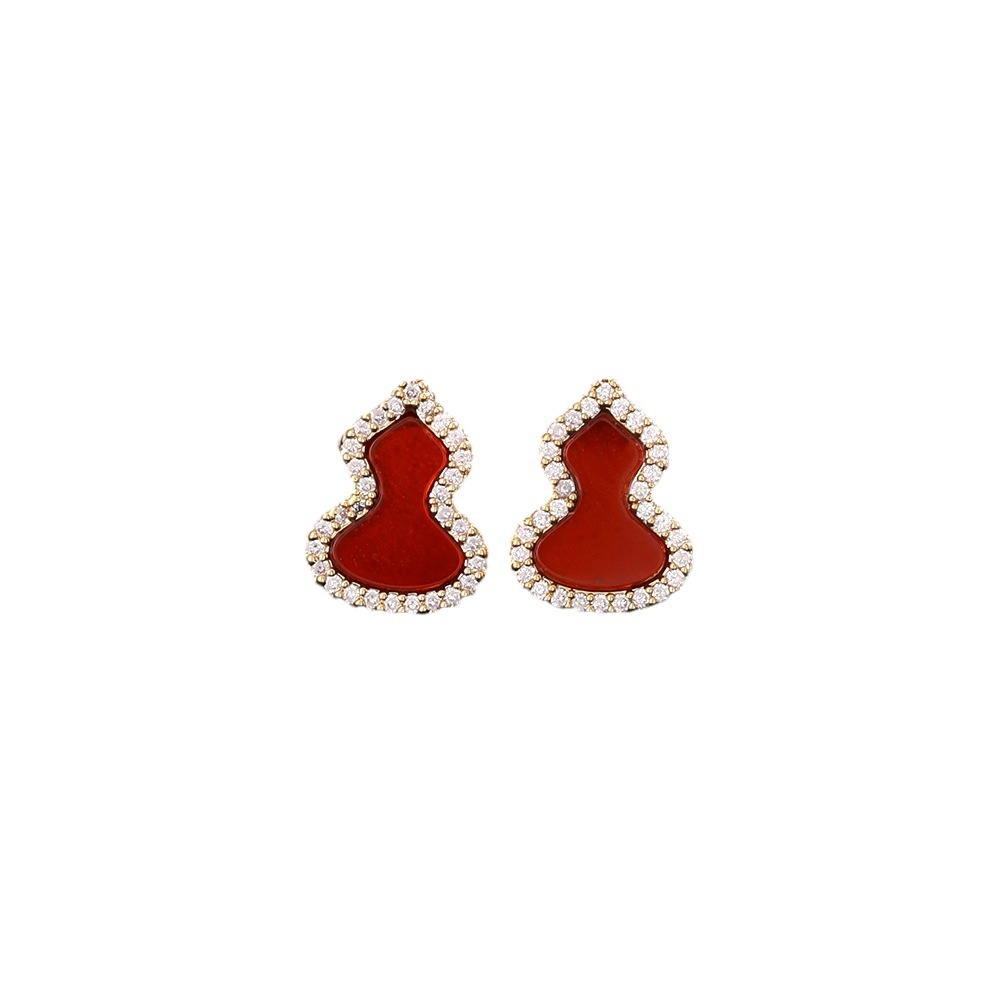 高版本925银针+真金电镀 麒麟小葫芦耳钉精致红玛瑙耳环