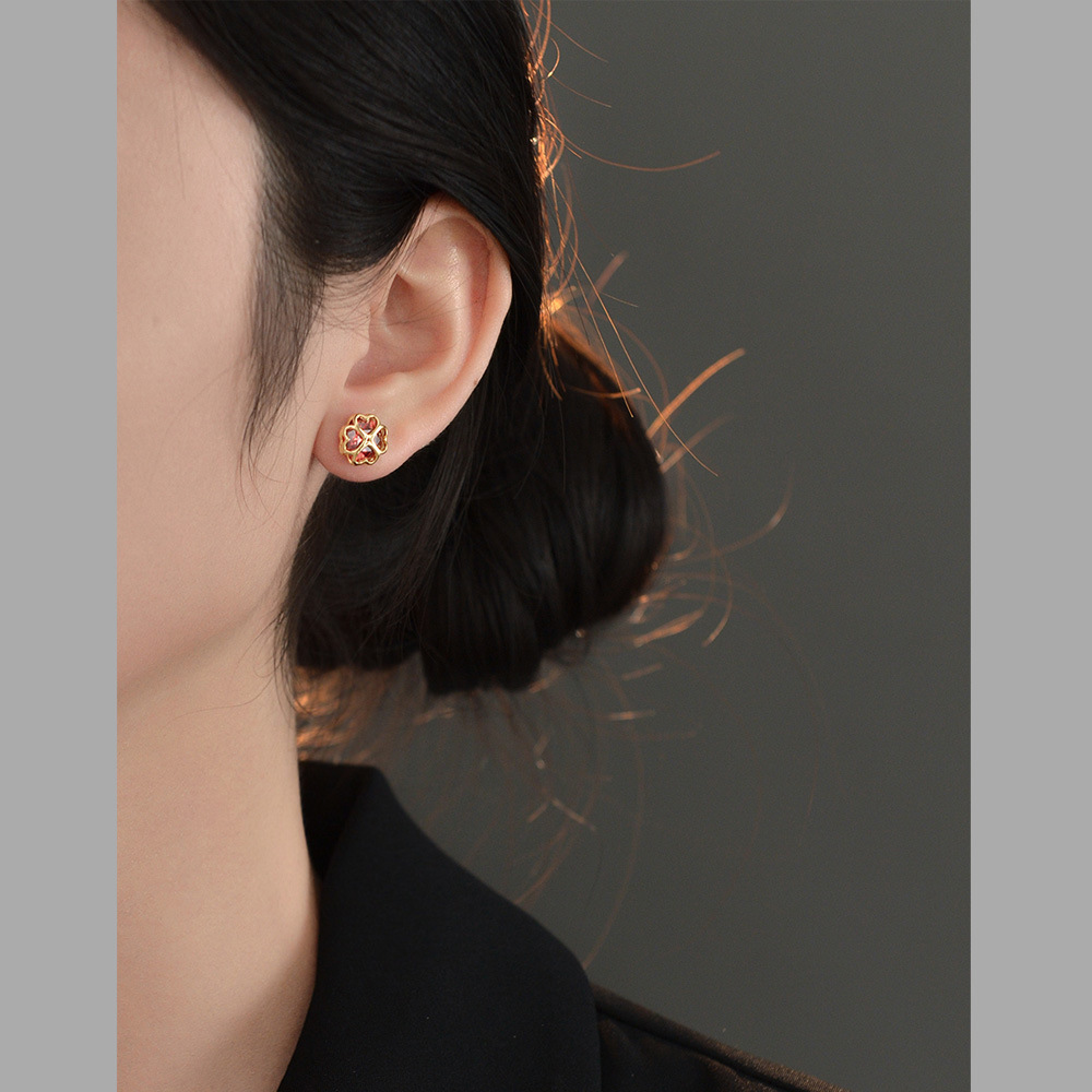 高版本+桃心耳堵+925银+加厚真金电镀 新款时尚简约甜美通勤小巧