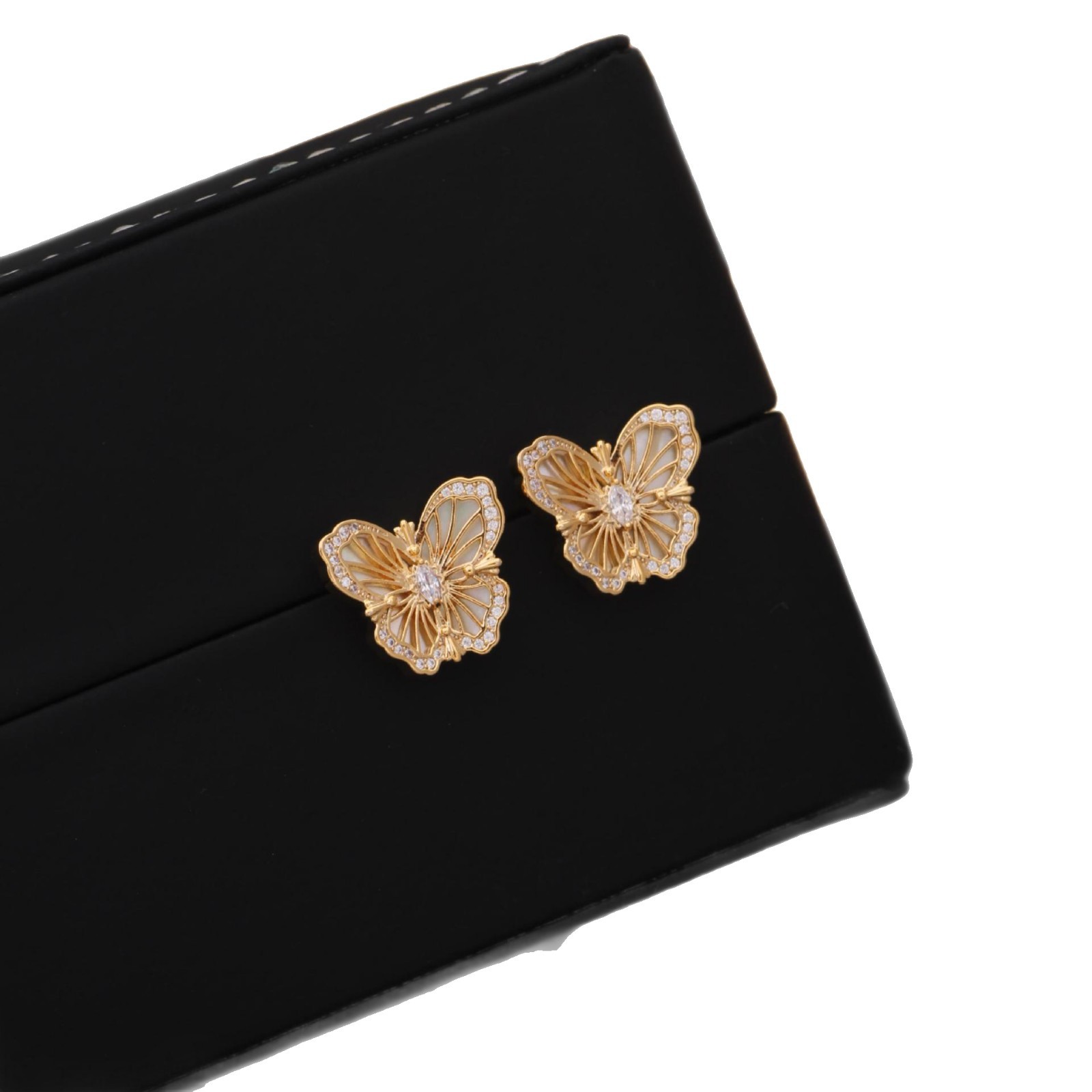 高版布欧美意大利蝴蝶耳环女满钻白贝母CNC精雕拉丝复古耳环