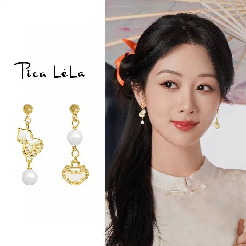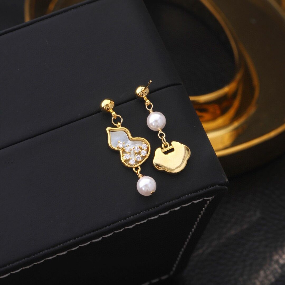 《高版本不掉色18k金厚度0.05+电泳+抛数++4》中国凤葫芦贝壳耳环