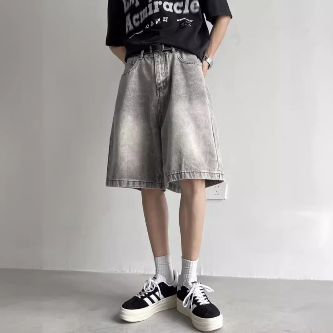 水洗工装牛仔短裤男夏季薄款中裤美式街头百搭宽松直筒运动五分裤
