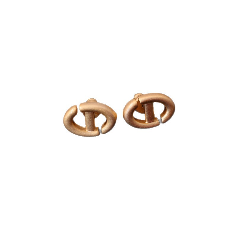 时尚精致字母CD猪鼻子造型耳钉 法式复古椭圆18K金不规则通勤耳环