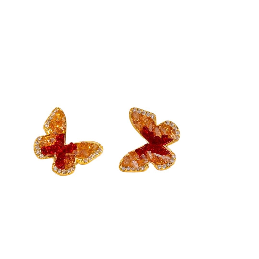 高版本925银针+真金电镀小清新甜美森系蝴蝶仙子渐变水晶耳环