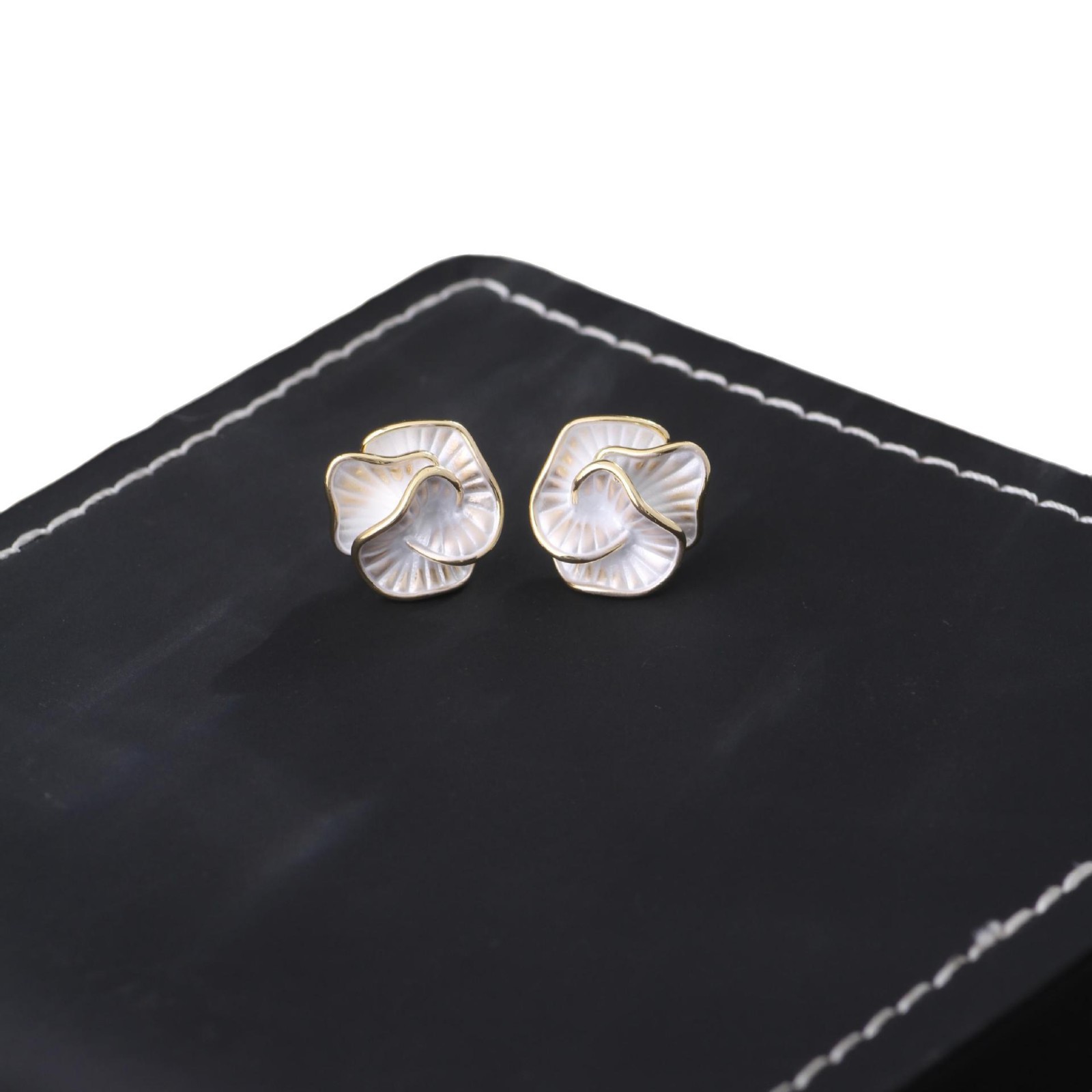 《高版本不掉色18k金厚度0.05+电泳+抛数++4》山茶花耳钉套装