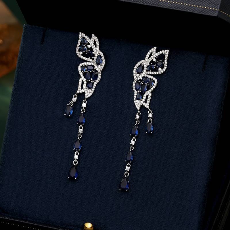 高版本真金电镀s925银针彩色锆石镶嵌耳饰比翼双飞长款流苏耳环
