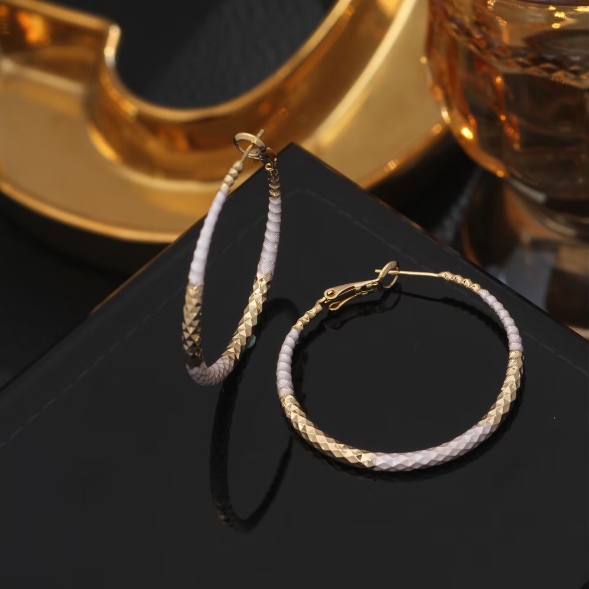 跨境欧美车花纹空心管圆圈耳环铜镀金个性时尚耳扣耳圈女