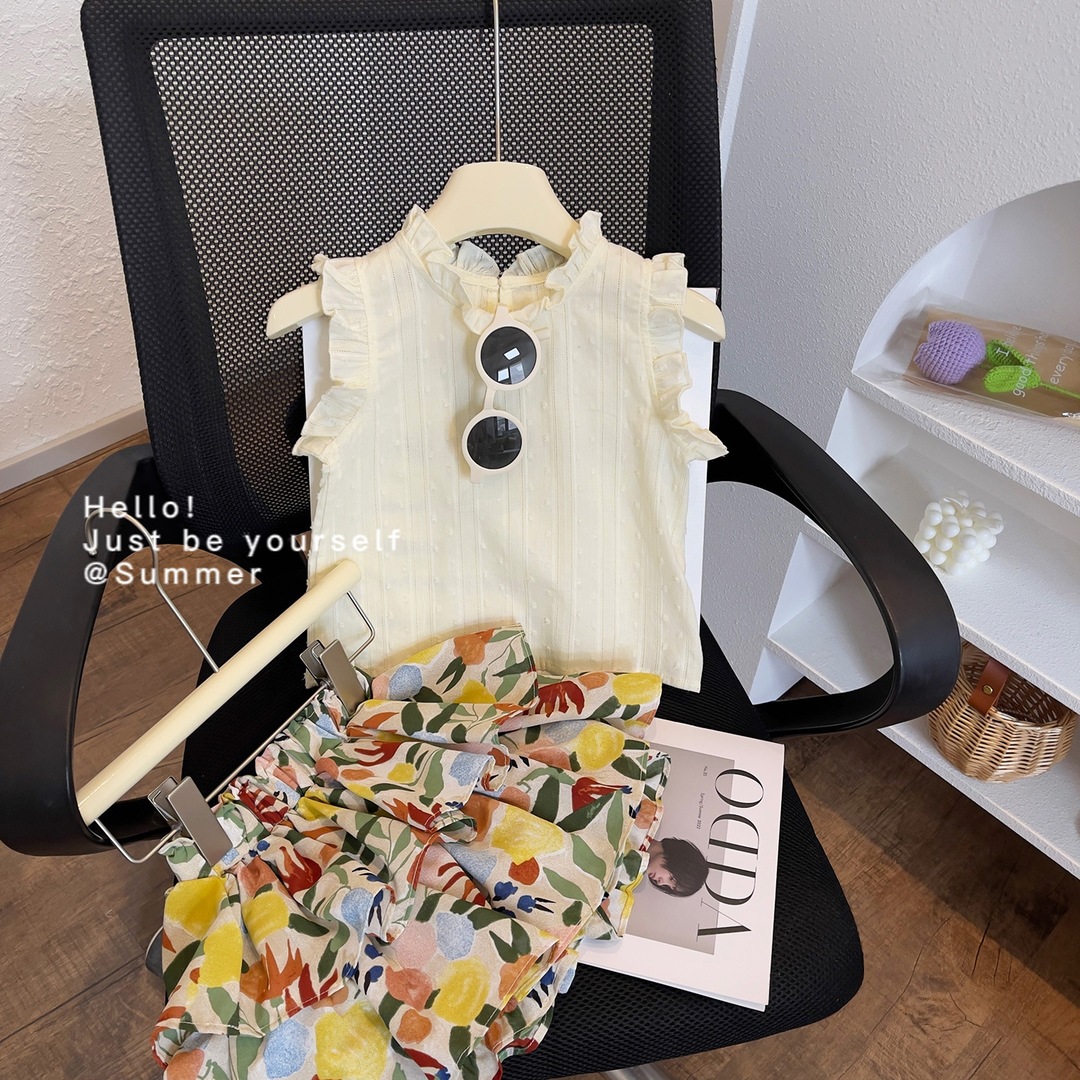 韩版女童2025夏季新款儿童无袖花色短裙套装女宝宝两件套