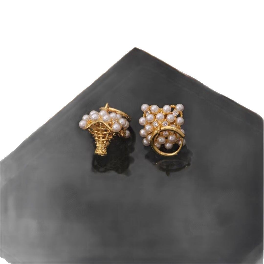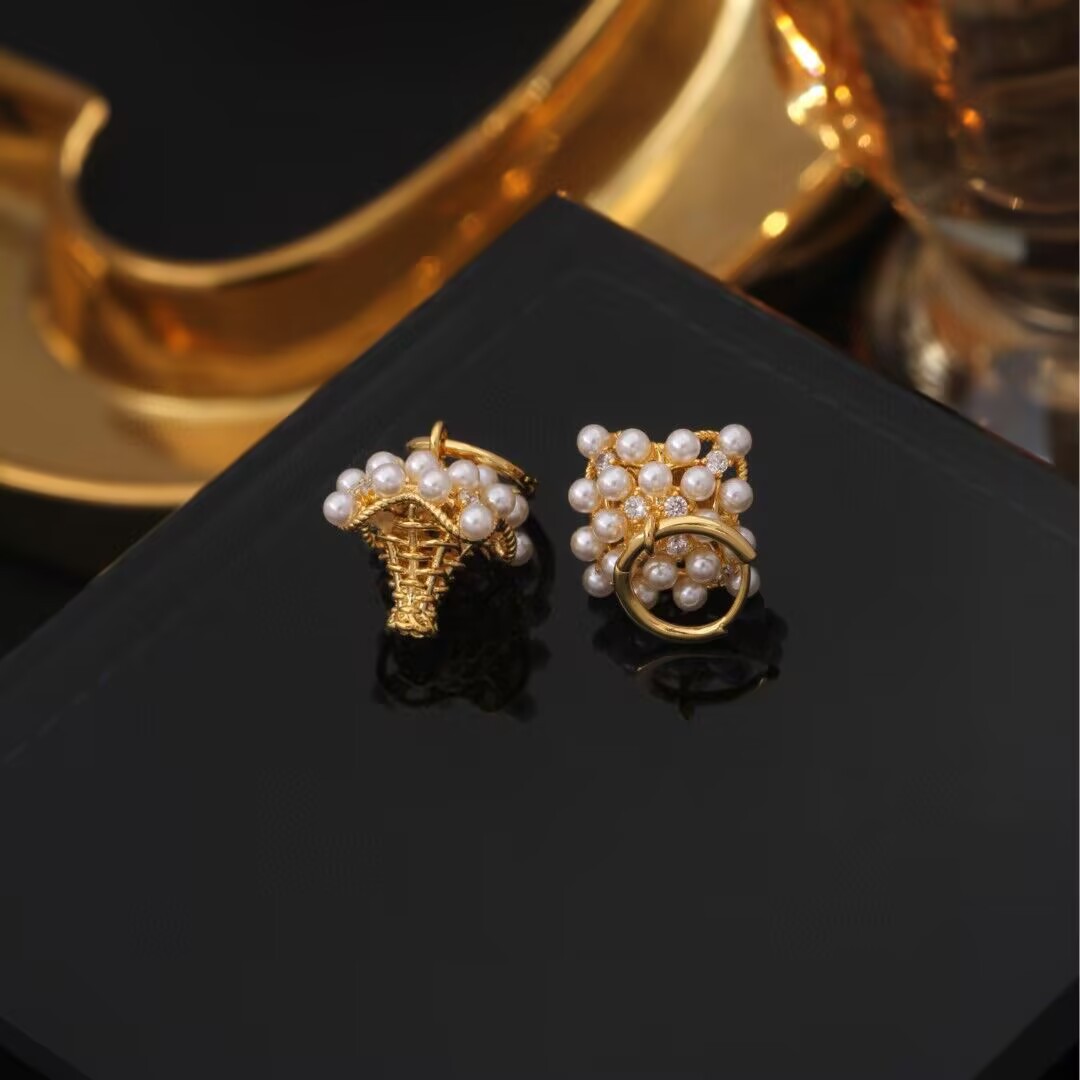 韩版新款立体镂空菱形珍珠耳环女时尚独特个性小众设计感气质耳饰