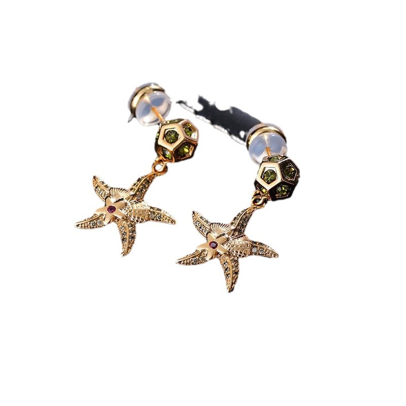 高版本925银针+真金电镀 时尚创意海星微镶锆石吊坠耳环