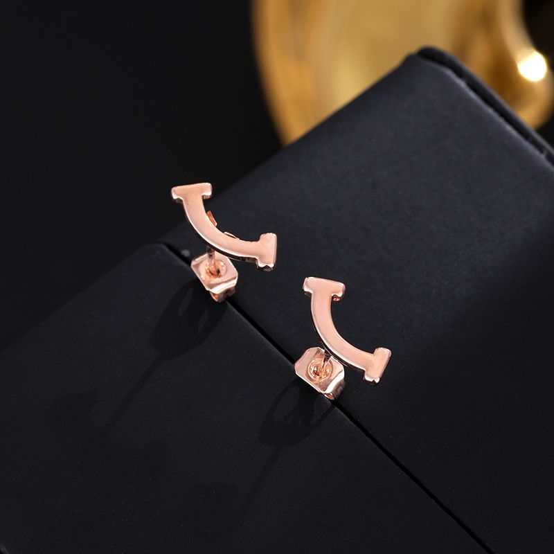 高版本真金电镀+925银针 T家V金微笑耳钉女气质独特轻奢耳环项链