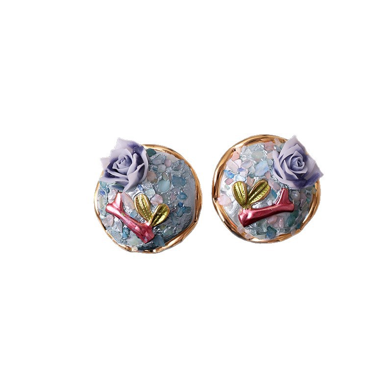 莫奈花园紫罗兰系列珐琅彩花朵几何小众vintage高级耳饰油画耳环