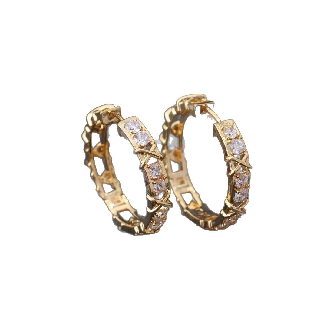高级感轻奢交叉镶钻耳圈适合方圆脸的耳环新款爆款耳钉气质耳饰女