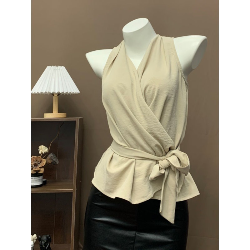 法式别致坎肩不规则吊带背心女外穿夏季内搭打底削肩雪纺无袖上衣