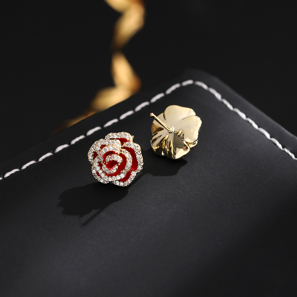 高版本925银针+真金电镀 黑色山茶花耳钉女复古轻奢高级感耳环